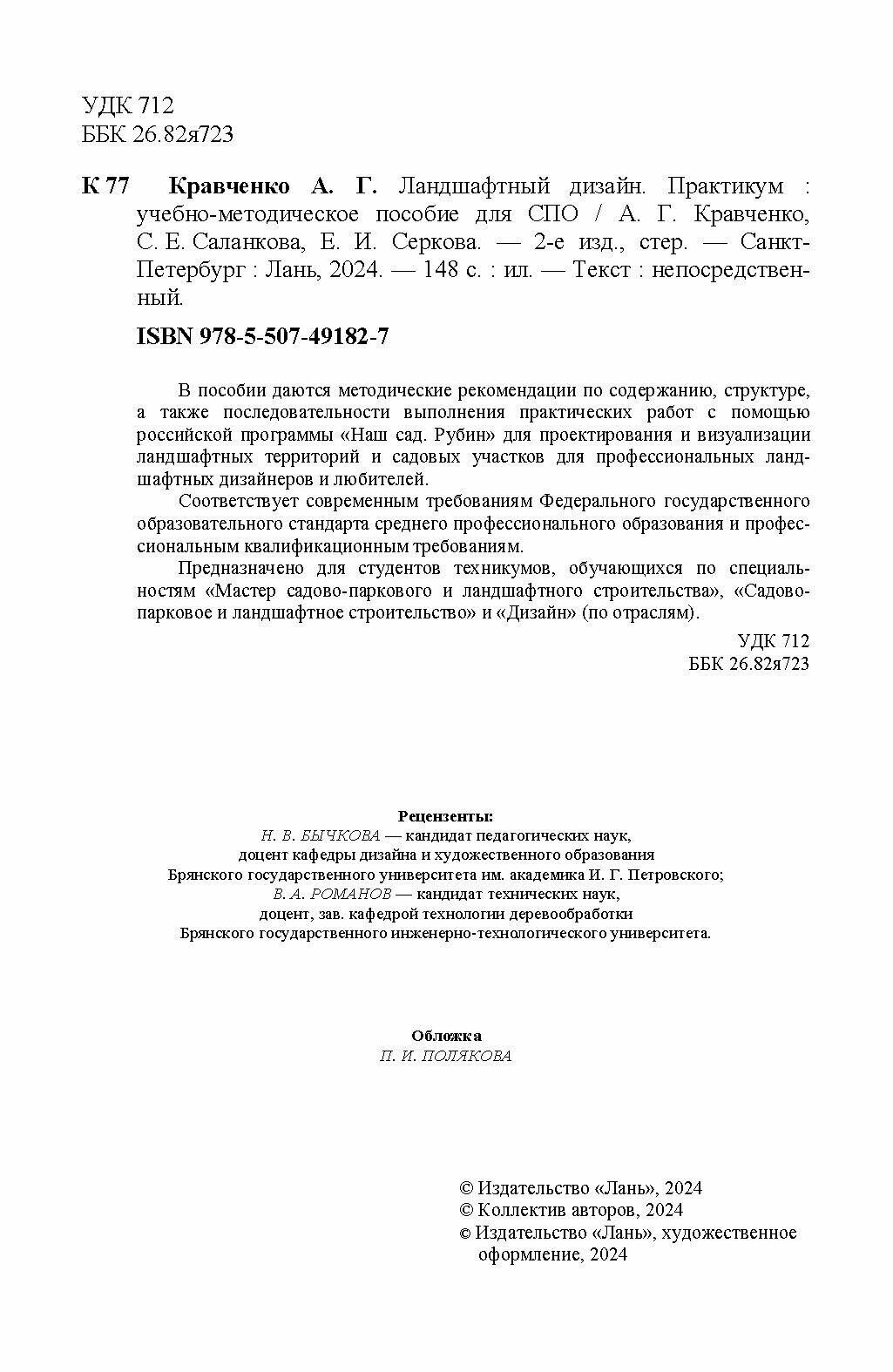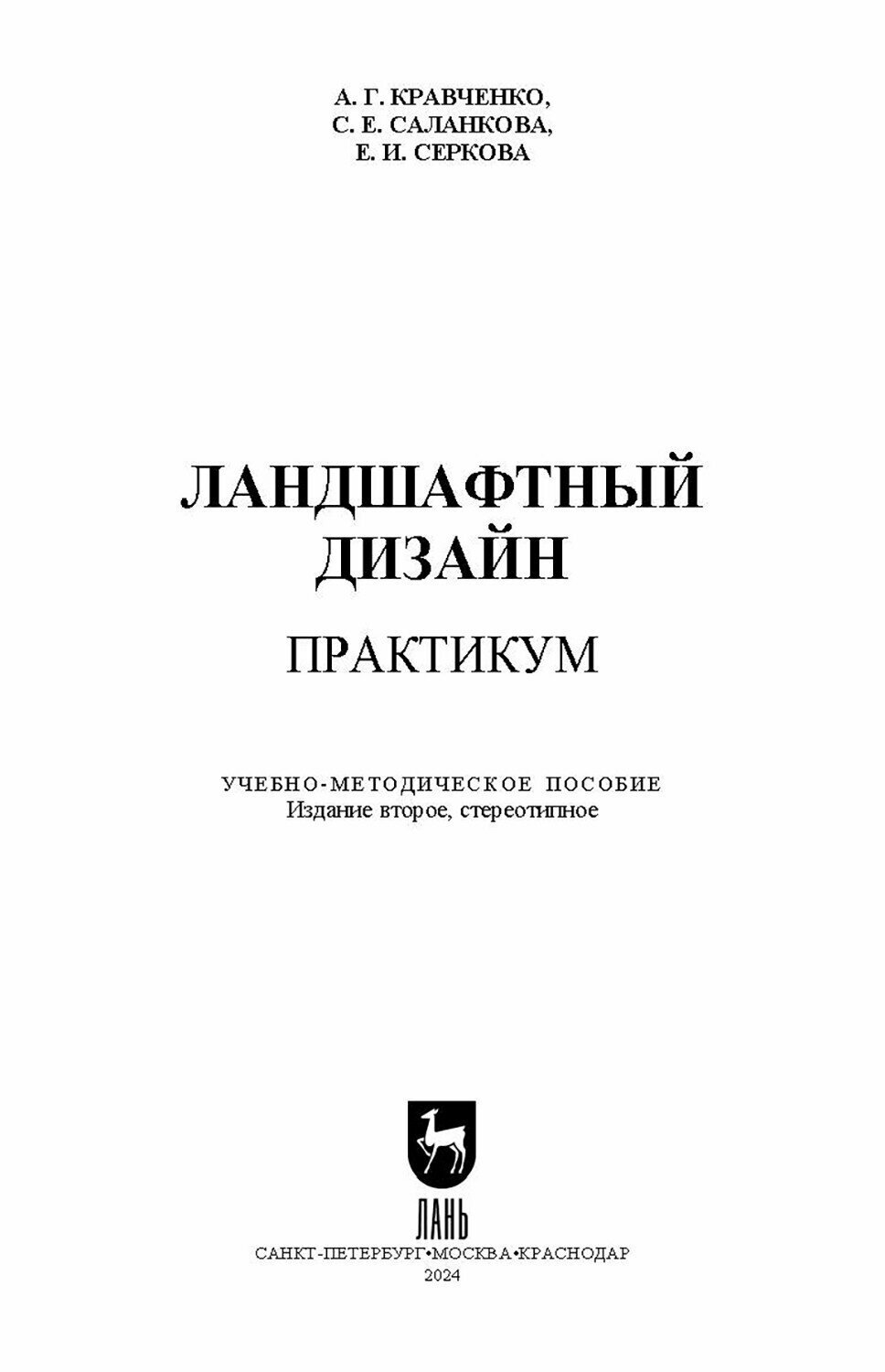 Ландшафтный дизайн. Практикум. Учебно-методическое пособие. СПО (Кравченко Алла Геннадьевна, Серкова Евгения Ивановна, Саланкова Светлана Евгеньевна); Лань, 2024