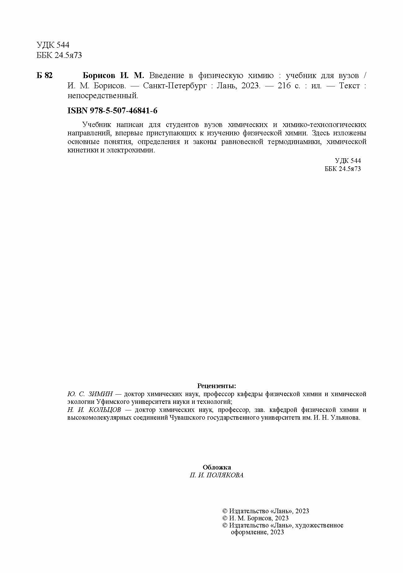 Введение в физическую химию. Учебник для вузов (Иван Борисов); Издательство ЛАНЬ, 2023