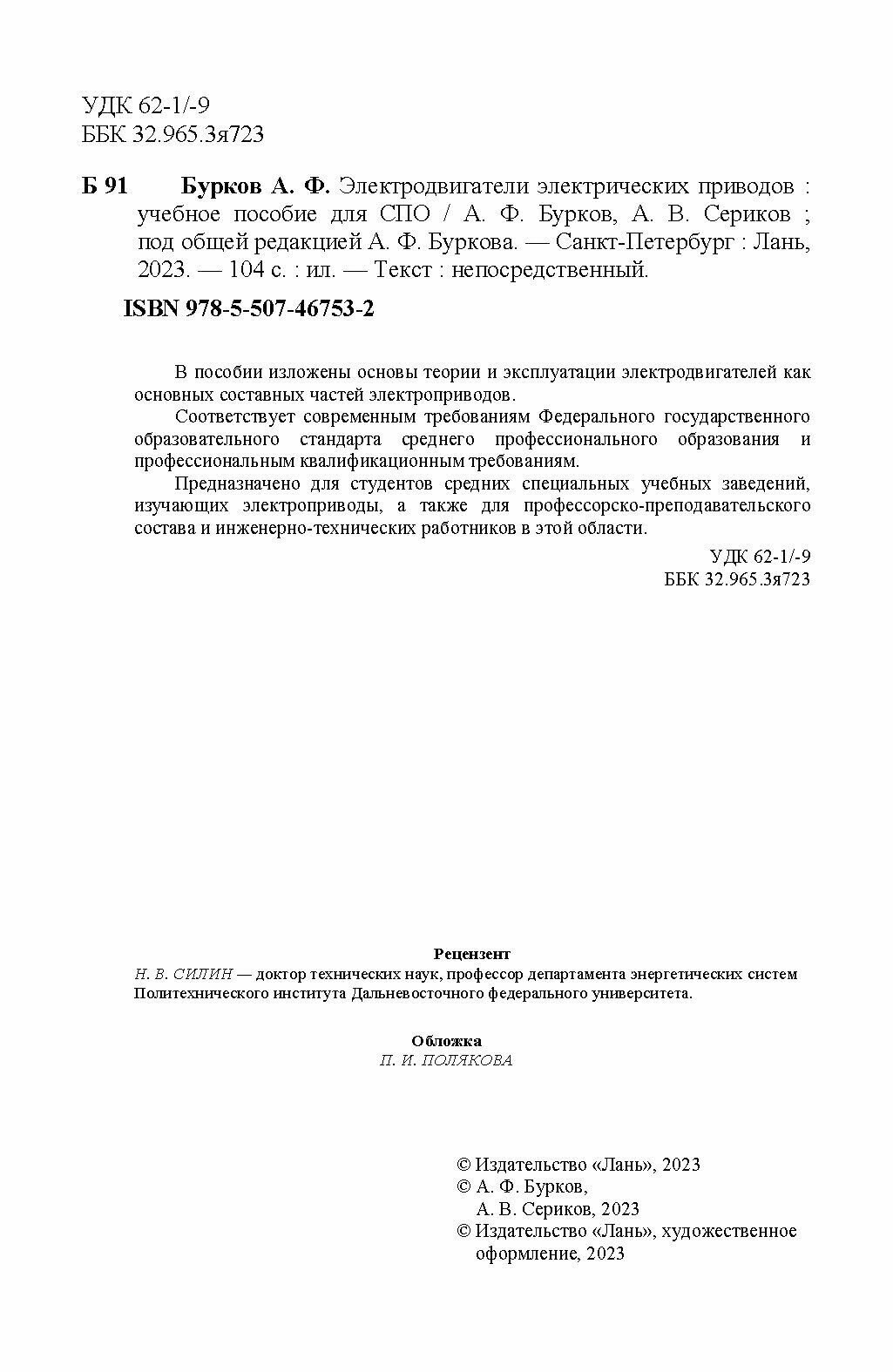 Электродвигатели электрических приводов. СПО (Бурков Алексей Федорович, Сериков Александр Владимирович); Лань, 2024