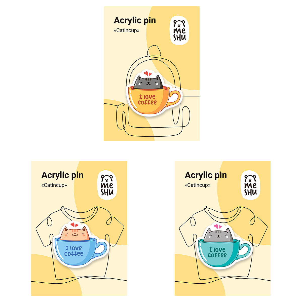Набор акриловых значков MESHU "Catsincups" 3 шт прямая УФ-печать (MS_54860)