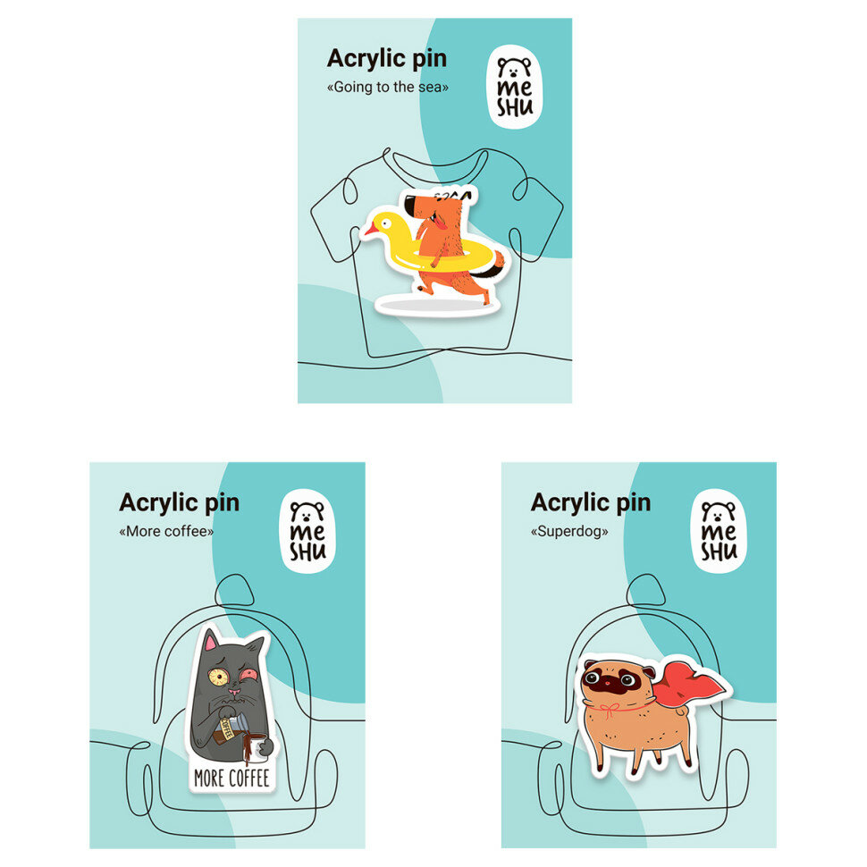 Набор акриловых значков MESHU – оригинальный и модный аксессуар, который преобразит любую вещь. В наборе 3 значка. Застежка-булавка позволяет значку надёжно держаться. Эти забавные значки созданы специально, чтобы поднимать настроение своему обладателю.
