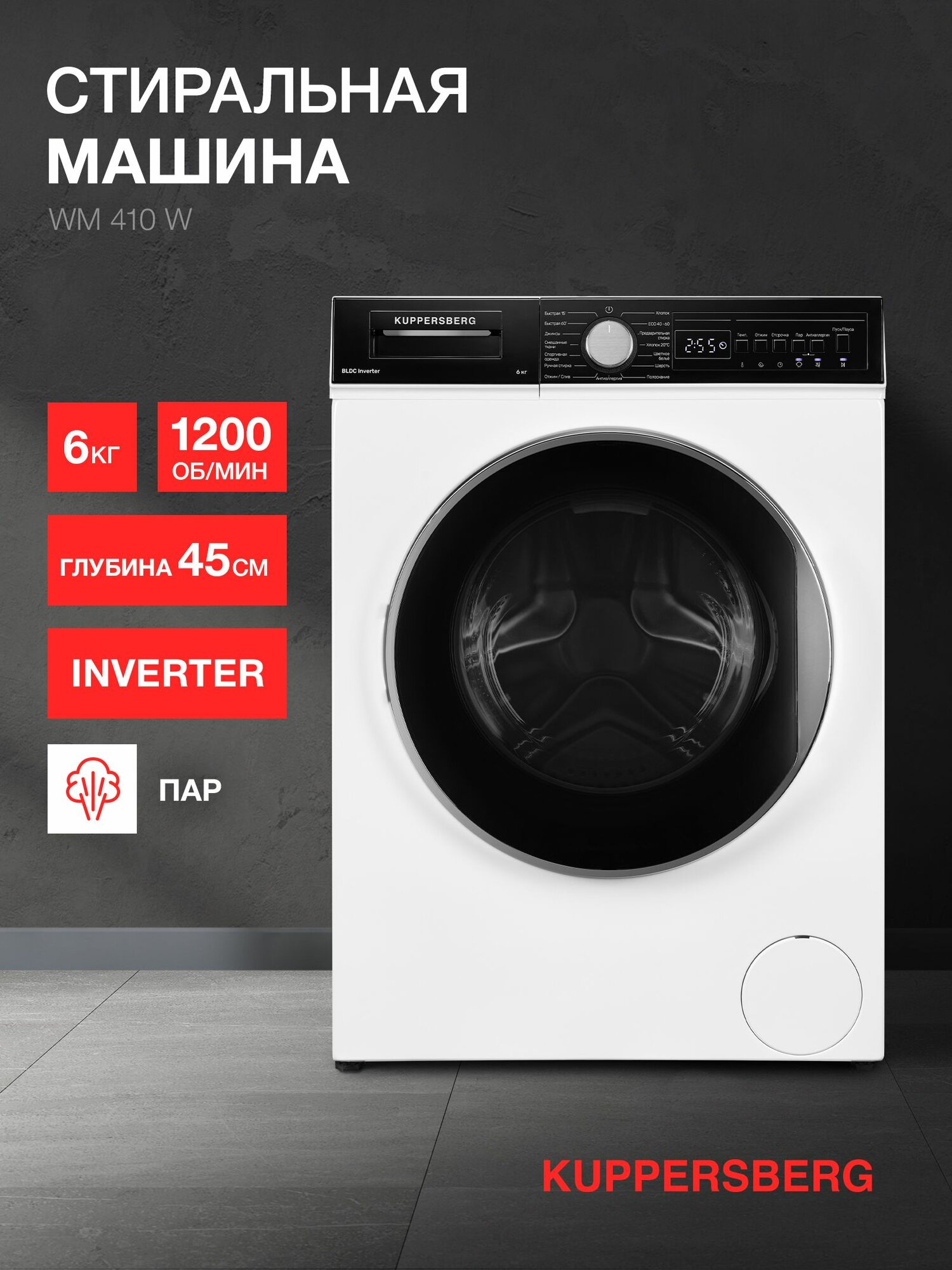 Стиральная машина KUPPERSBERG белый черный WM 410 W (размер: стандартная)