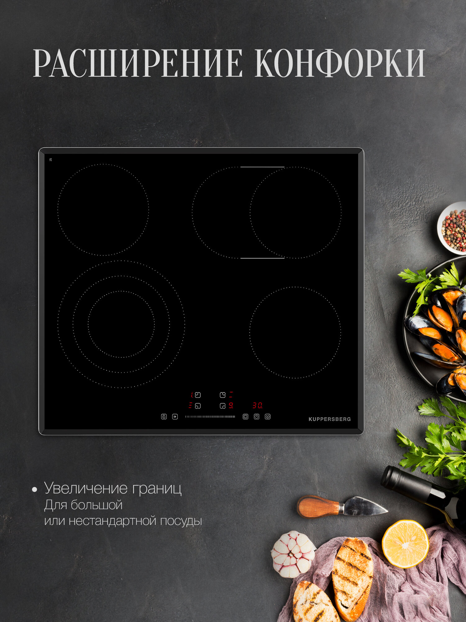 Варочная встраиваемая панель электрическая Kuppersberg - это современное и функциональное решение для вашей кухни, оборудована четырьмя конфорками, включая зоны расширения в форме круга и овала. Сенсорное управление и кнопки обеспечивают интуитивный контроль, а блокировка панели предотвращает случайное изменение настроек. Функция Stop/Go одним нажатием останавливает и возобновляет нагрев. Вспомогательная готовка включает три режима: растапливание, подогрев и медленное тушение. Индикаторы остаточного тепла оповещают о степени нагрева конфорок. В режиме бездействия автоматически отключается, что повышает безопасность использования.