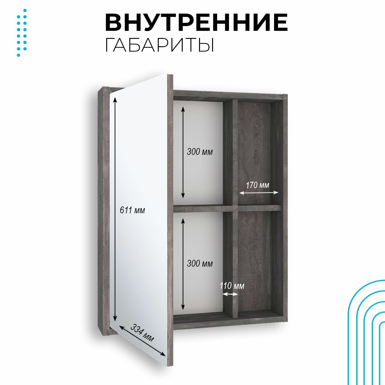 Зеркало-шкаф Runo Эко 52 железный камень 00-00001324
