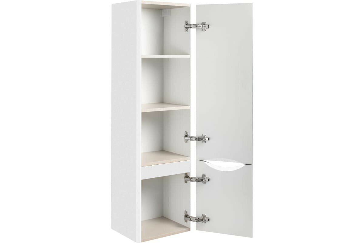 Шкаф пенал для ванной комнаты Runo Тоскана (подвесной) - выполнен в ультрасовременном дизайне в классическом белом цвете. Пенал отличается изысканным дизайном, скруглённые углы, древесная текстура фасада, врезная ручка – придают шкафу необычный и незабываемый внешний вид. Шкаф в ванную комнату оснащён двумя распашными дверцами, в верхнем отделении две встроенные полки. Каждая дверца укомплектована двумя петлями, верхняя с доводчиком, нижняя без доводчика. Мебель для ванной RUNO - красота и практичность в мелочах!