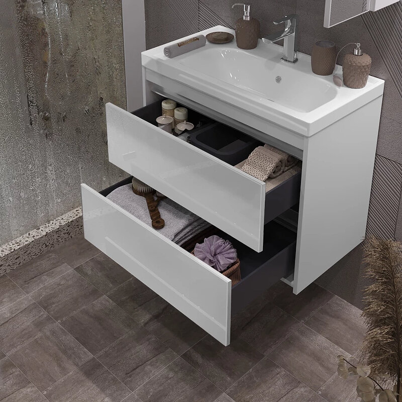 Тумба для комплекта Opadiris Фреш 70 белая не только идеальное украшение для ванной комнаты, но и великолепное функциональное решение любого санузла. Подвесной способ установки дает возможность не только визуально увеличить пространство, но и обеспечивает быстрый и удобный доступ для уборки.