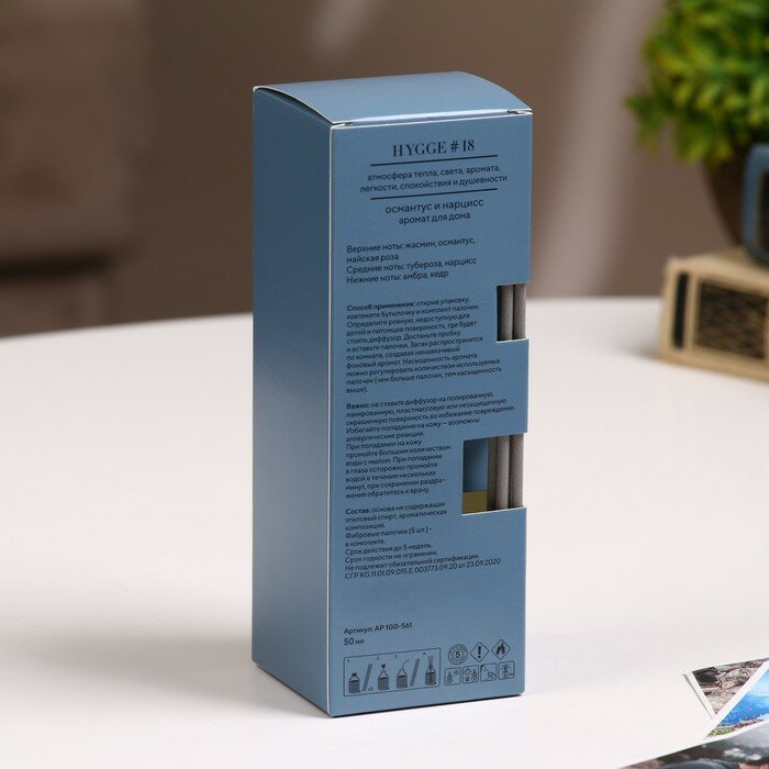 | Состав комплекта | Картонная коробка, стеклянная бутылочка, ароматическая жидкость,фибровые палочки 5 шт |