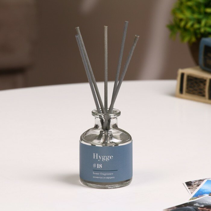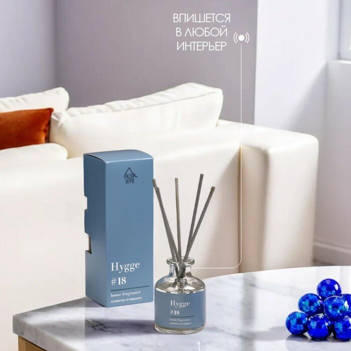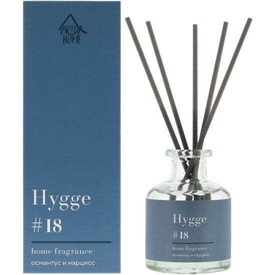 **Ароматический диффузор Arida Home Hygge 18** — это флакон с ароматической жидкостью, предназначенной для придания приятного запаха помещению. Для применения открыть флакон, вставить все фибровые палочки, периодически переворачивая их. Во влажных помещениях срок службы значительно сокращается. Жидкость воспламеняемая, поэтому ее следует беречь от открытого огня.