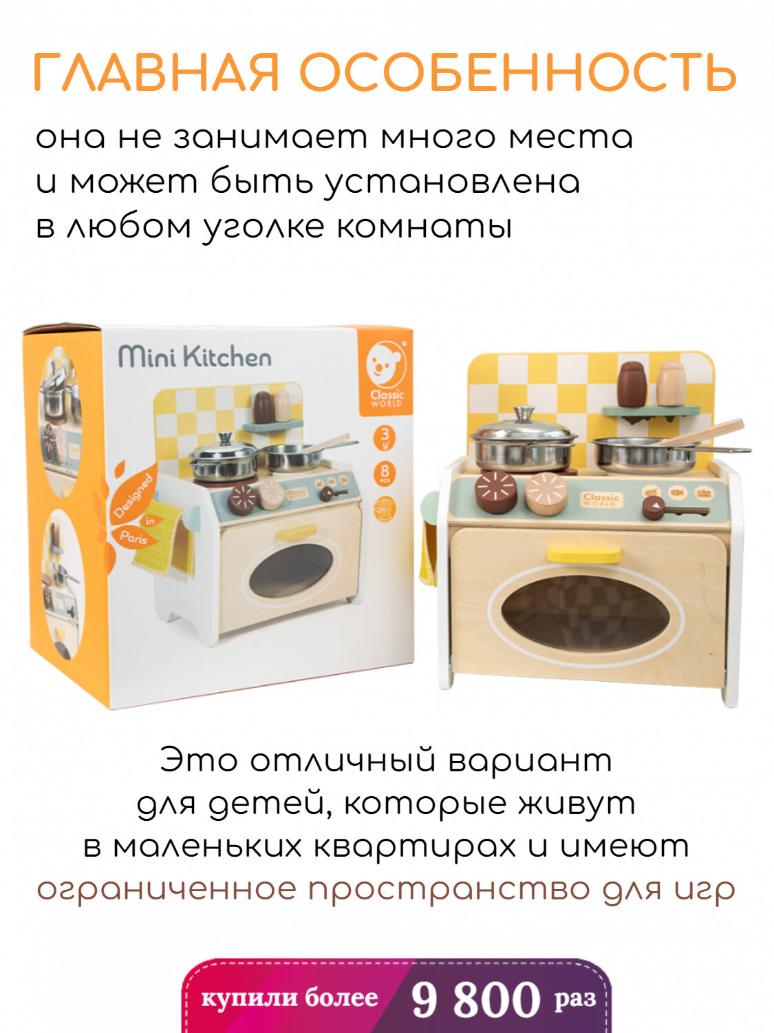 Наша компактная кухня - находка для маленького поварёнка! В ней есть две варочные панели и духовка со смотровым окошком.