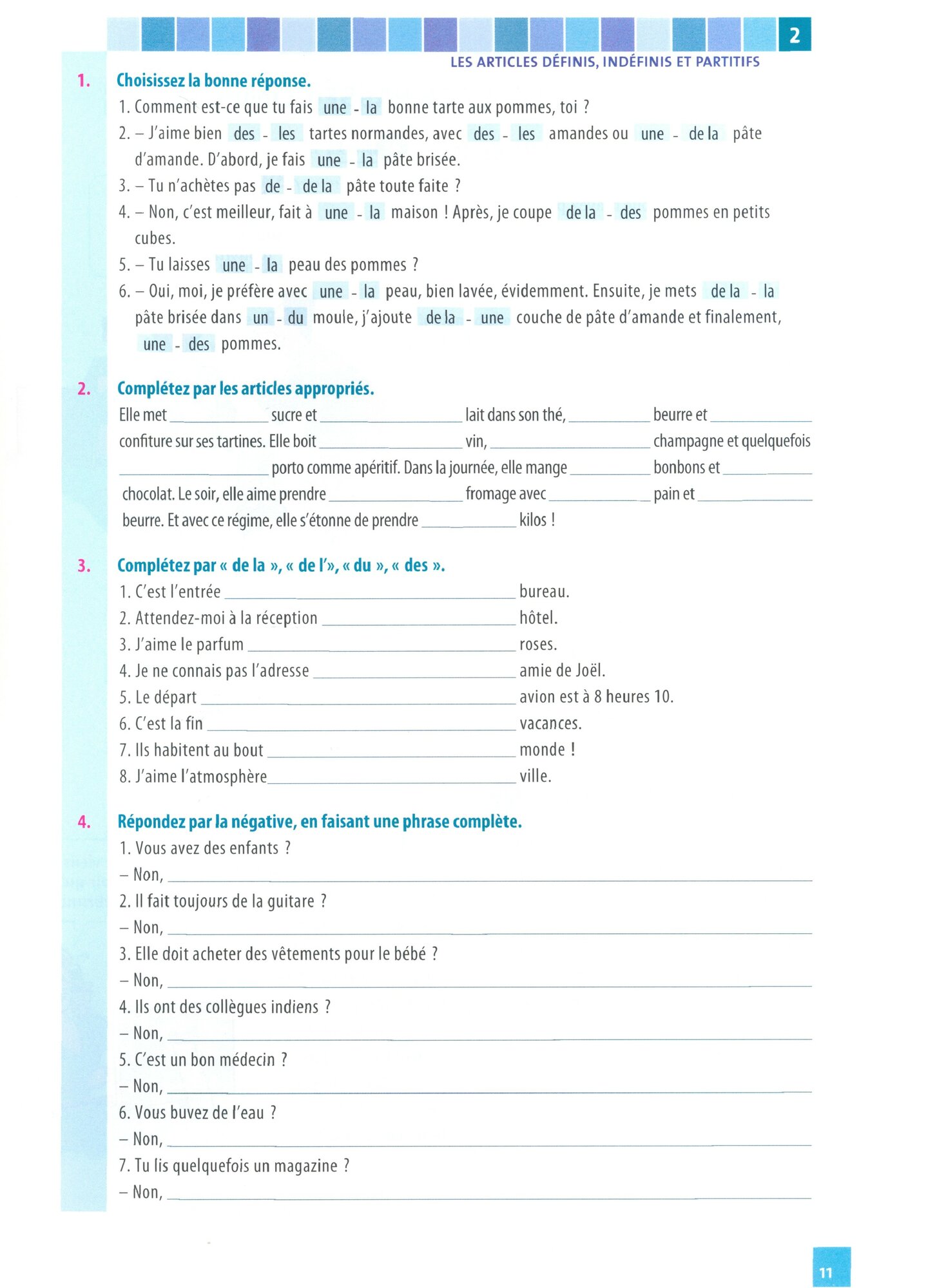 sur la troisieme pages : des exercices d'application dont les corriges se trouvent dans un livret encarte.