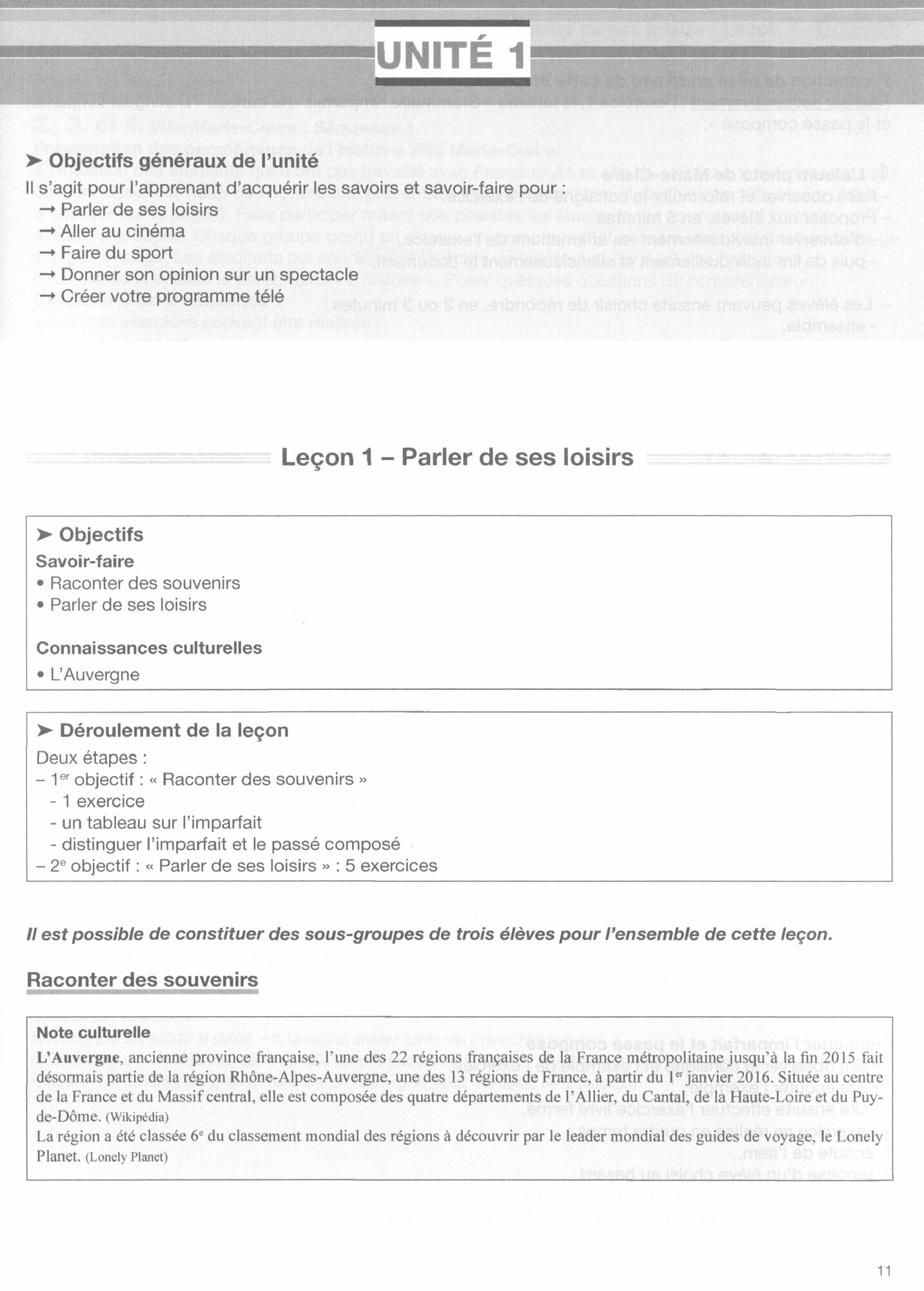 - Une lecon sur une double page avec un objectif oriente vers l’action et la communication.