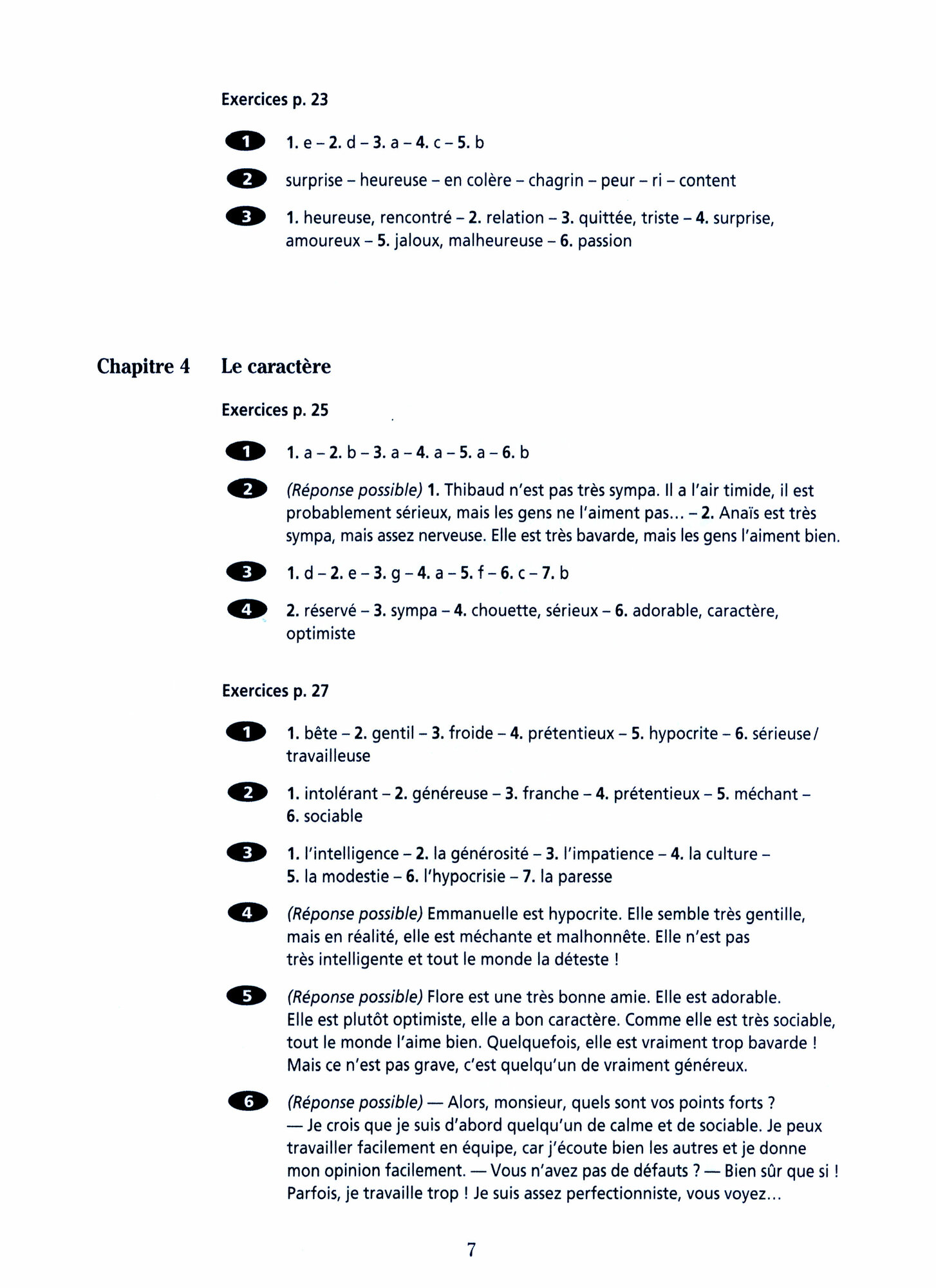 Corriges de l'ouvrage de Vocabulaire en francais langue etrangere (FLE) dans la collection Progressive destine aux grands adolescents et adultes, niveau debutant (A1).