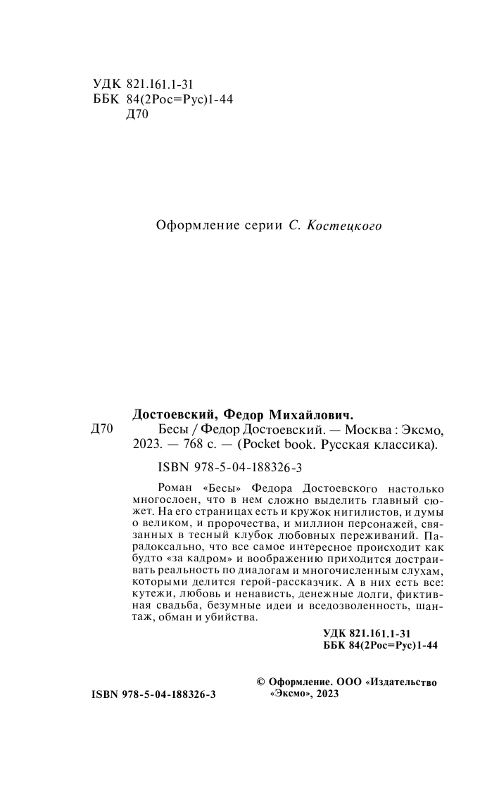 Книга: Бесы (Достоевский Федор Михайлович); ООО "Издательство "Эксмо", 2023