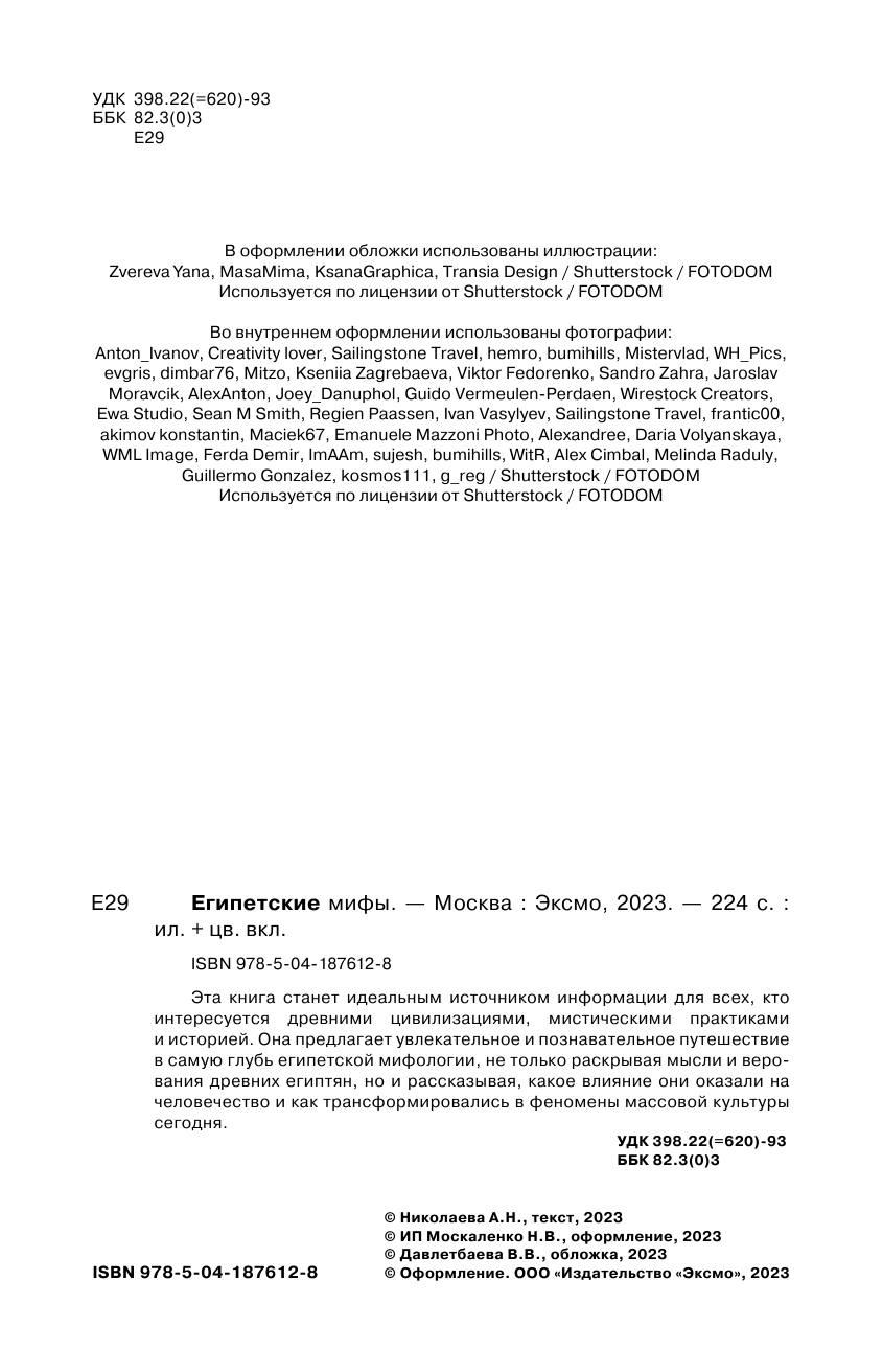 Книга: Египетские мифы (Николаева А. Н.); Эксмо, БОМБОРА, 2025