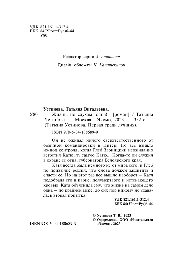 | Серия | Татьяна Устинова. Первая среди лучших |