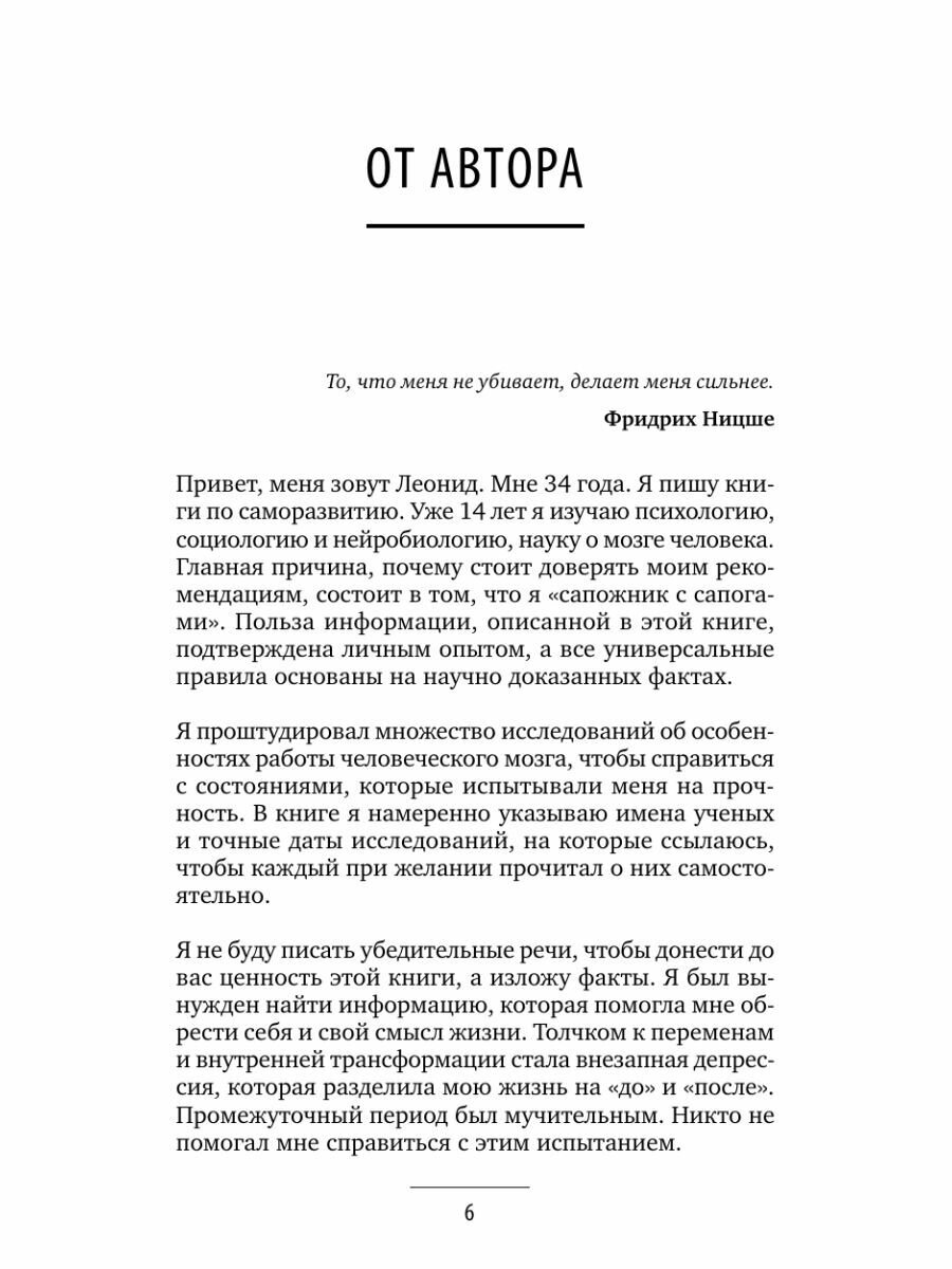 «Главная причина, почему стоит доверять моим рекомендациям, состоит в том, что я „сапожник с сапогами“. Польза информации, описанной в этой книге, подтверждена личным опытом, а все универсальные правила основаны на научно доказанных фактах».