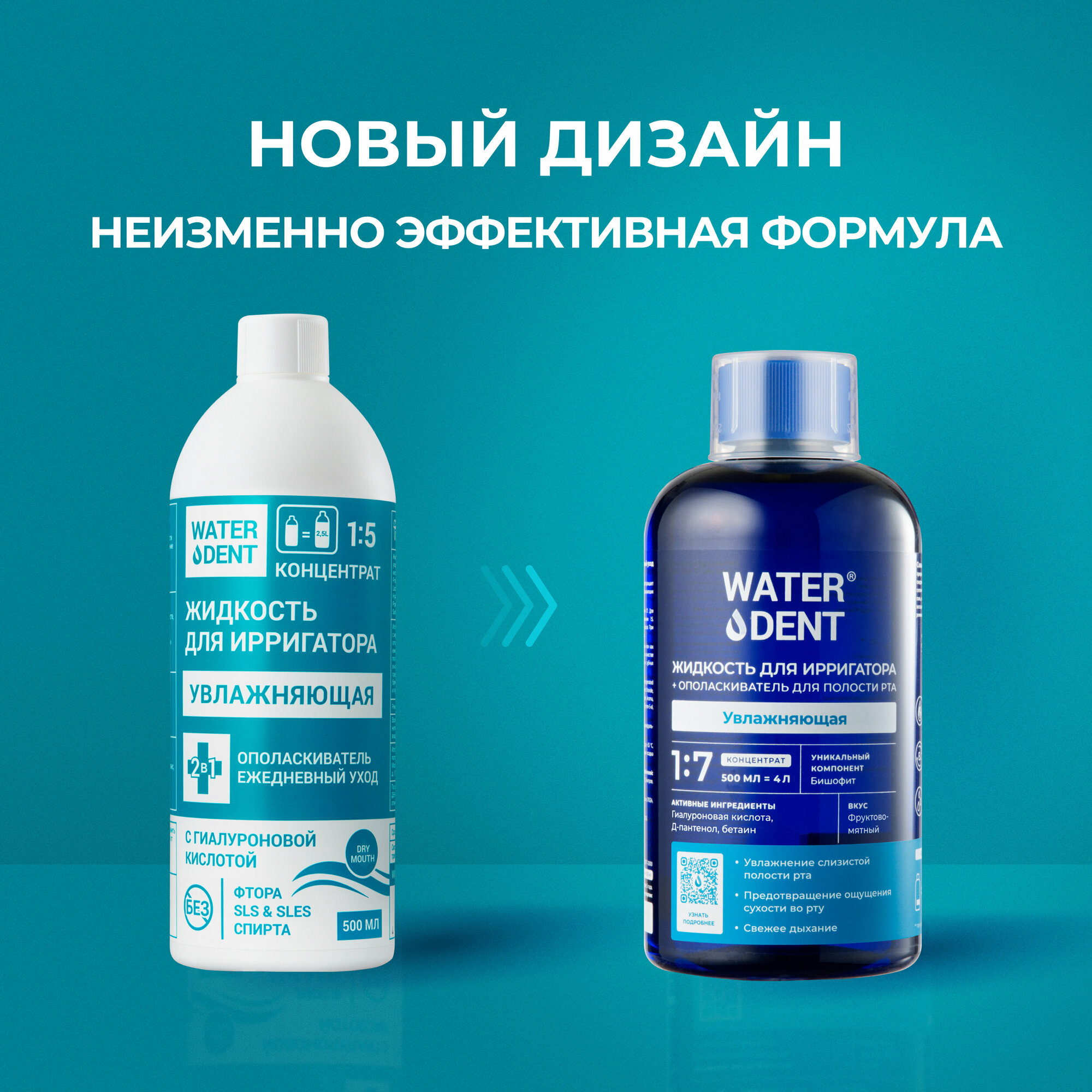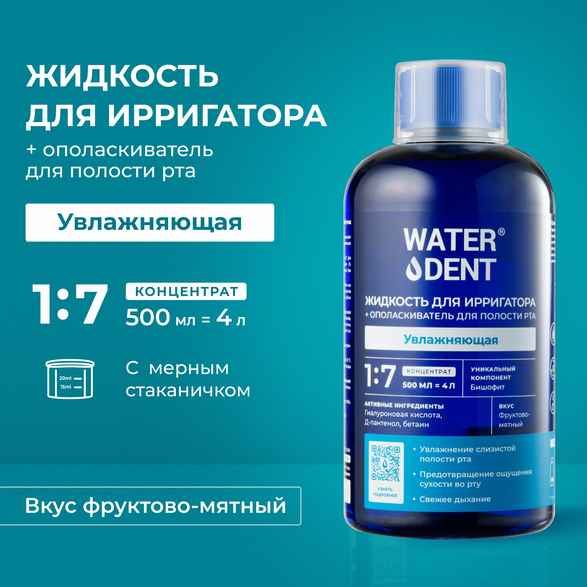 Жидкость для ирригатора Water Dent Увлажняющая с гиалуроновой кислотой обеспечивает профессиональный уход в домашних условиях даже в труднодоступных участках полости рта. Концентрированная — требует разведения перед использованием. Может использоваться без ирригатора как ополаскиватель. Подходит для ежедневного применения.