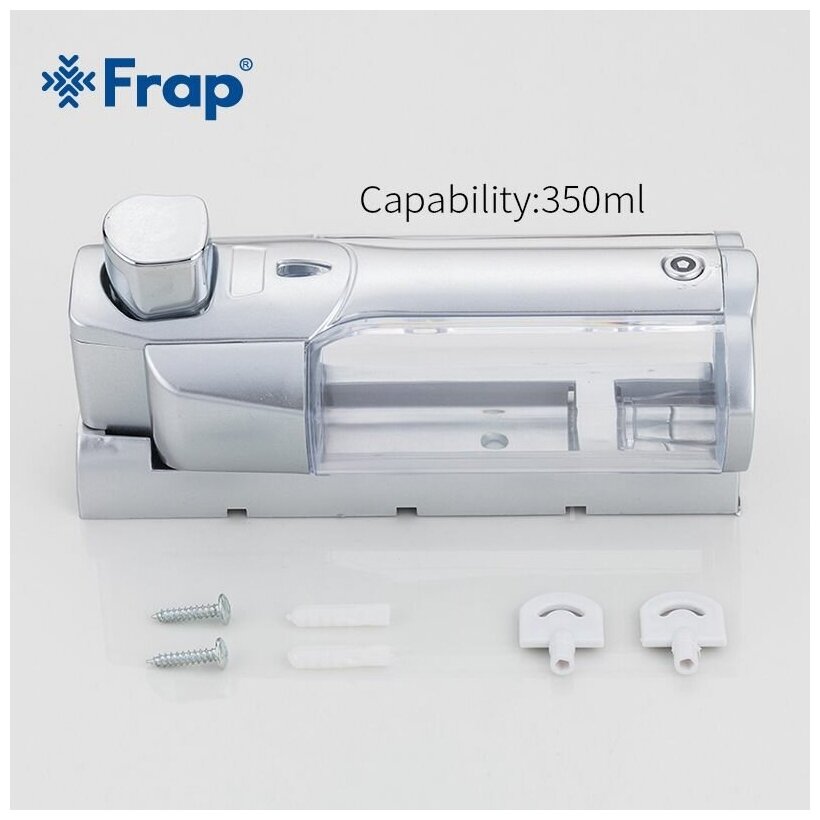 Дозатор для жидкого мыла Frap F407 отличается стильным дизайном в сочетании с высоким уровнем практичности, функциональности и надёжности. Устанавливается на стену посредством шурупов или саморезов. Хромированное покрытие корпуса позволяет органично вписываться в современные интерьеры ванных комнат. Объём резервуара 360 мл.