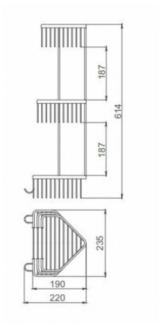 Цвет: хром. Материал: нержавеющая сталь. Размер (ШхВхД): 235х614х220 мм. Монтаж: подвесной. В комплекте поставки: полка корзина. Страна производства: Россия. Гарантия: 1 год.