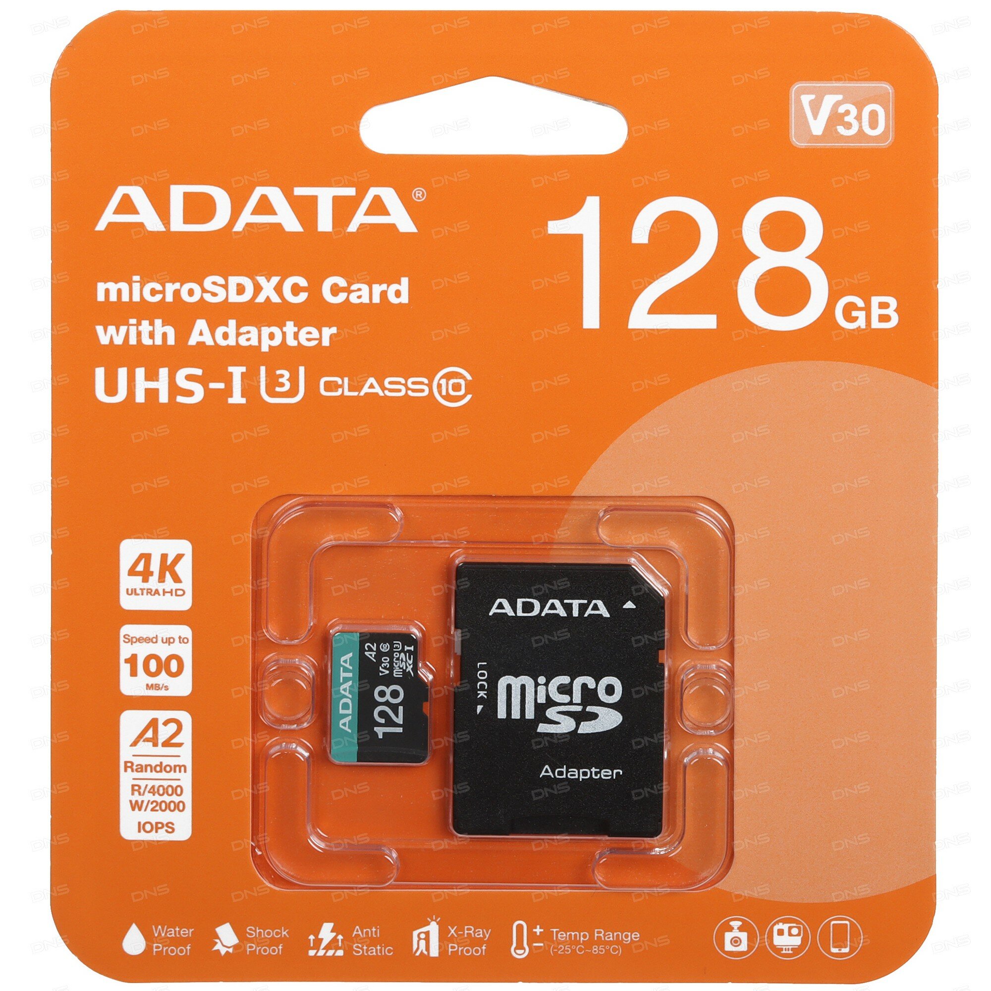 Карта памяти 128GB ADATA UHS-I U3 Class 10/V30S/A2 Adapter 100/80 MB/s RTL AUSDX128GUI3V30SA2-RA1