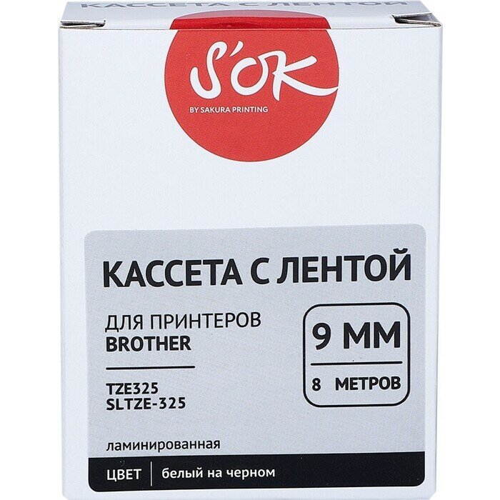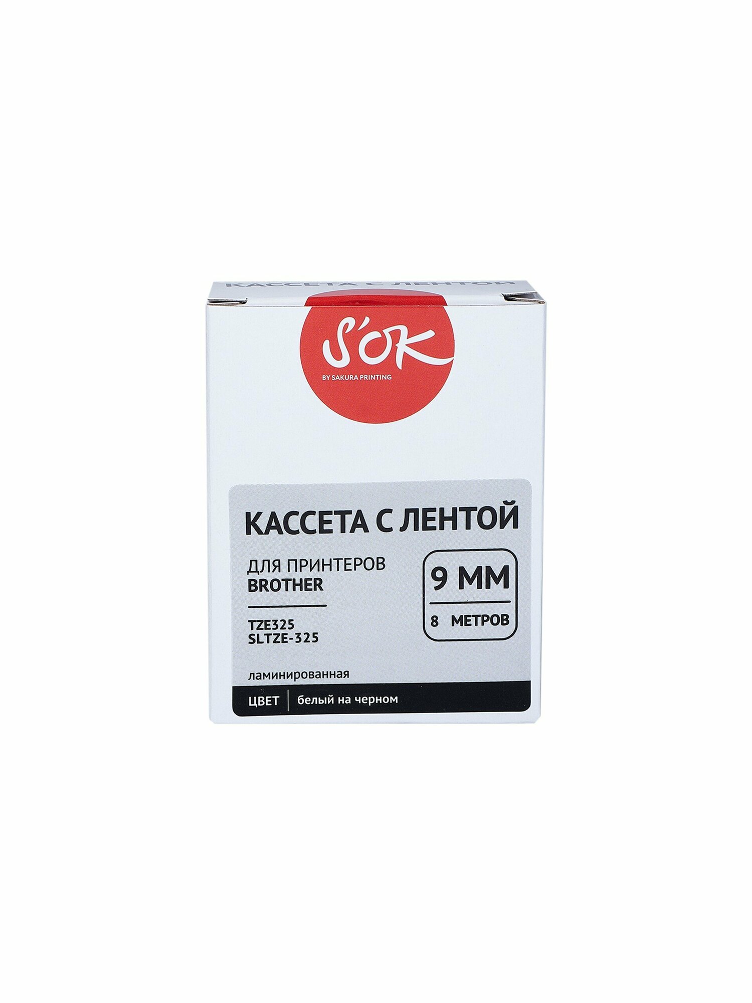 Кассета Sakura с лентой S'OK by Sakura Printing TZE325 для Brother белый на черном 9мм/8м SLTZE325
