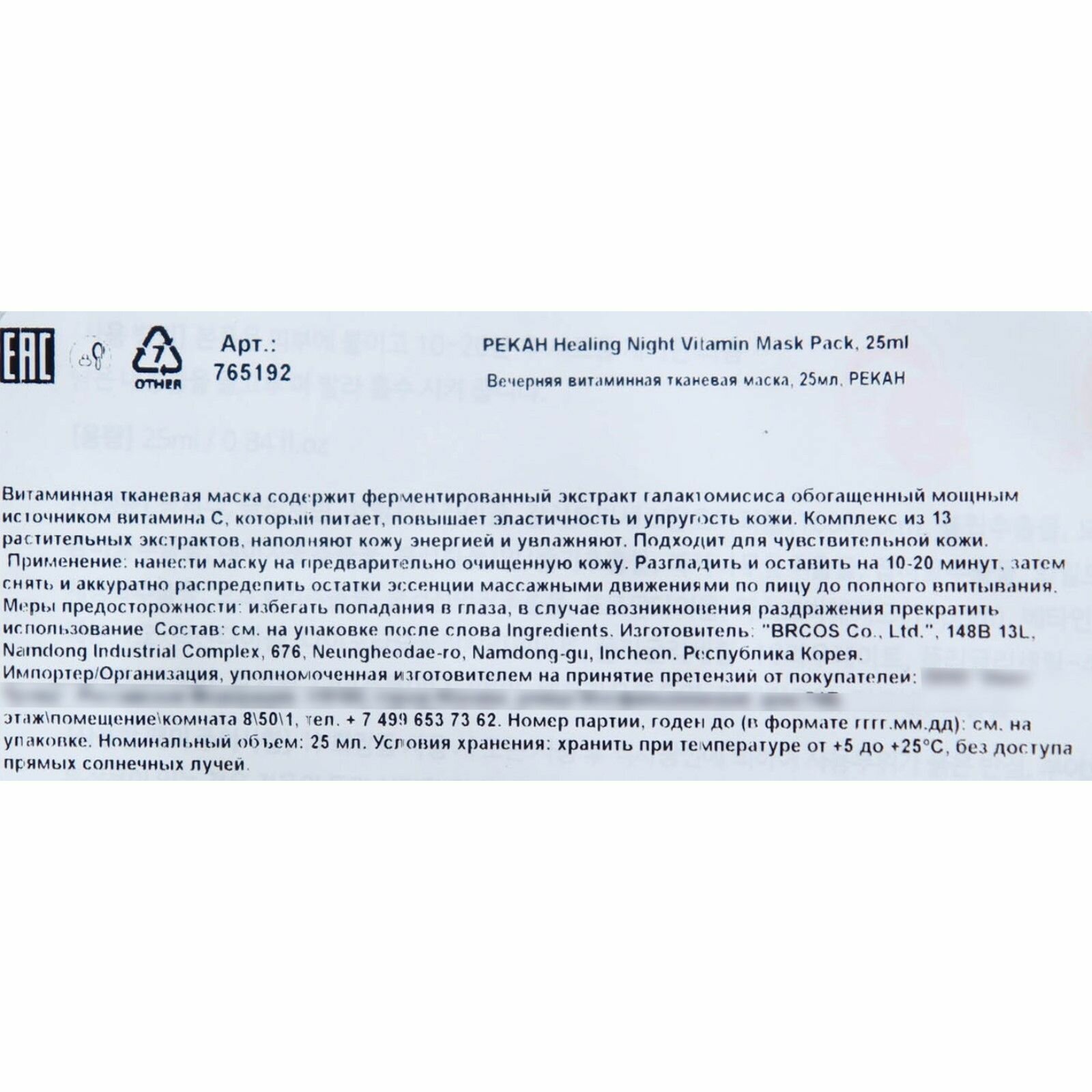 На сегодняшний день товар «Маска для лица Pekah Вечерняя витаминная тканевая 25 мл» можно купить с кешбеком в 1 магазине: Ашан