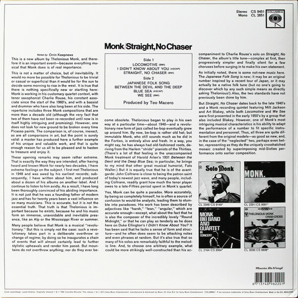 Модель: Thelonious Monk - Straight, No Chaser (Black Vinyl LP)
