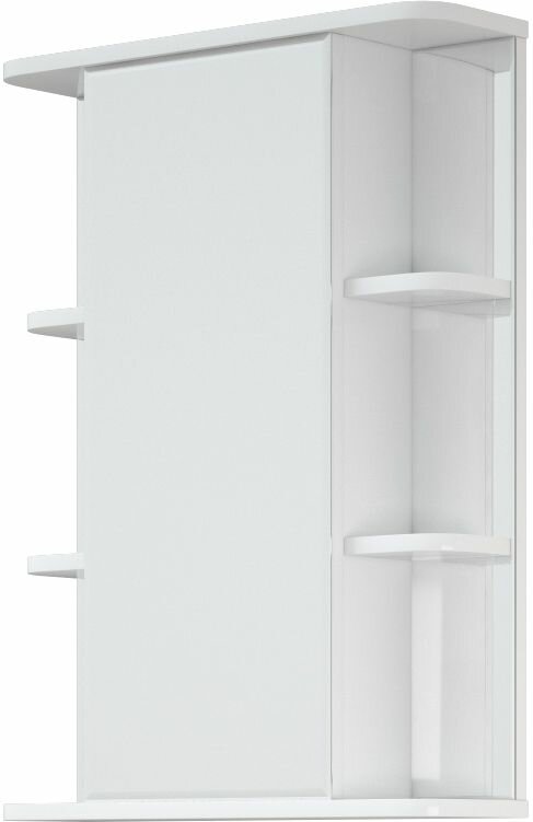 Шкаф оснащён двумя открытыми полочками справа и слева. На центральной двери находится зеркало. Открывание двери осуществляется за счёт того, что на двери в углу есть эргономичная форма для этого. Верхняя, нижняя крышки, открытые полочки - МДФ в Плёнке ПВХ. Страна производства: Россия. Гарантия: 1 год.