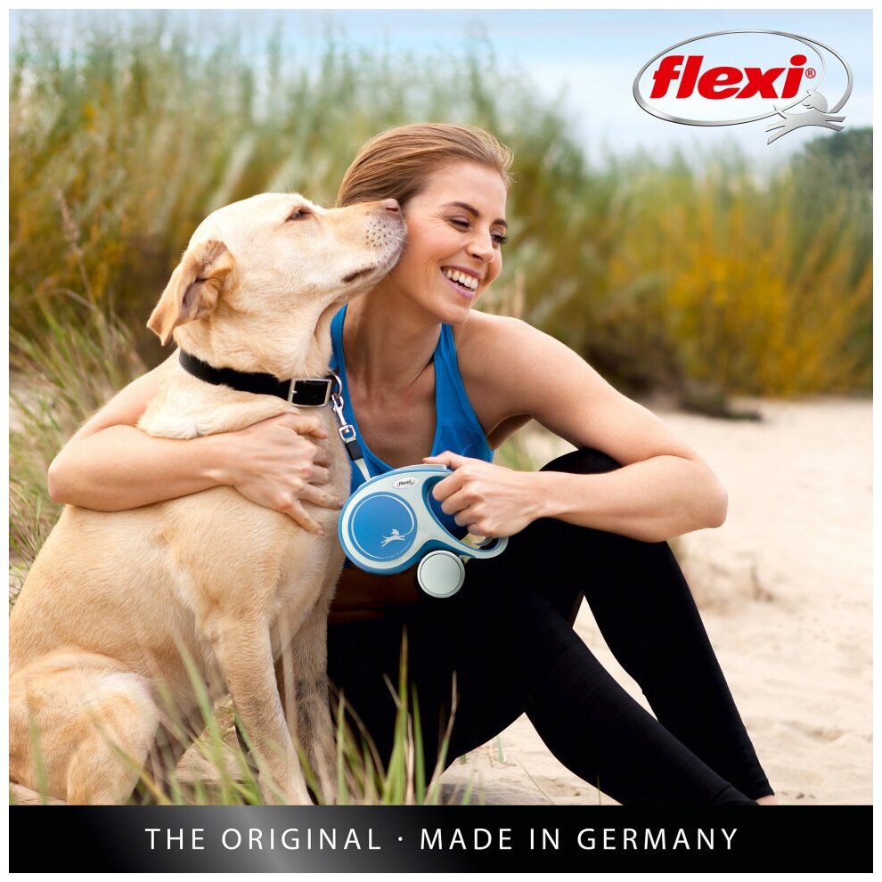 Поводок Flexi Рулетка New Comfort L до 50 кг синяя ремень 8 м