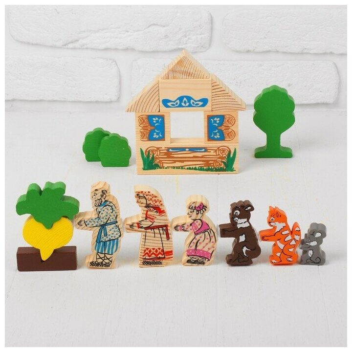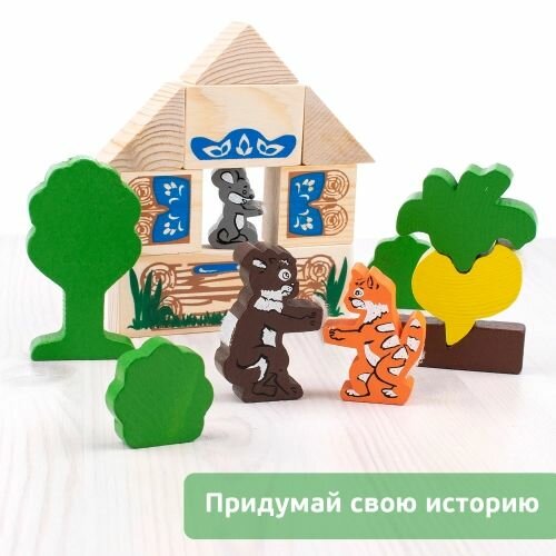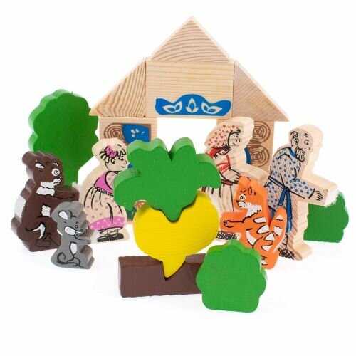 Конструктор Репка состоит из 19 деталей и содержит всех героев .