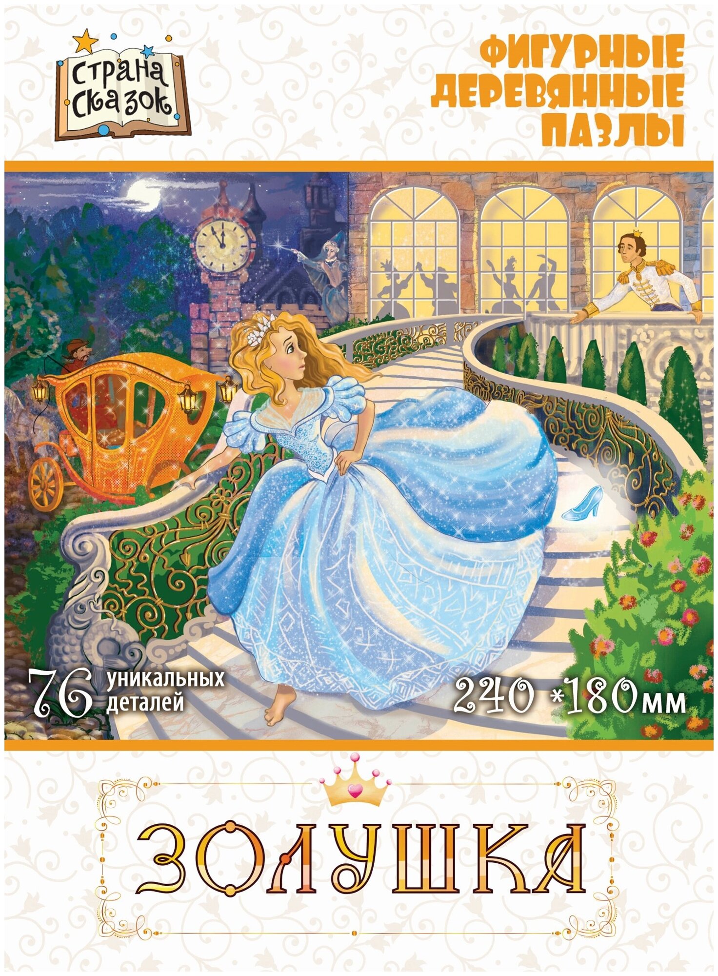 Тайна пазла: Собирая пазл вместе с ребенком, вы погрузитесь в мир сказки Золушка писателя Шарля Перро. С помощью тематических деталей пазла познакомьте его с персонажами сказки, обсудите их роли, придумайте вместе новые истории. Предлагаем вам соединить все детали вместе, собрав таким образом изображение целиком.