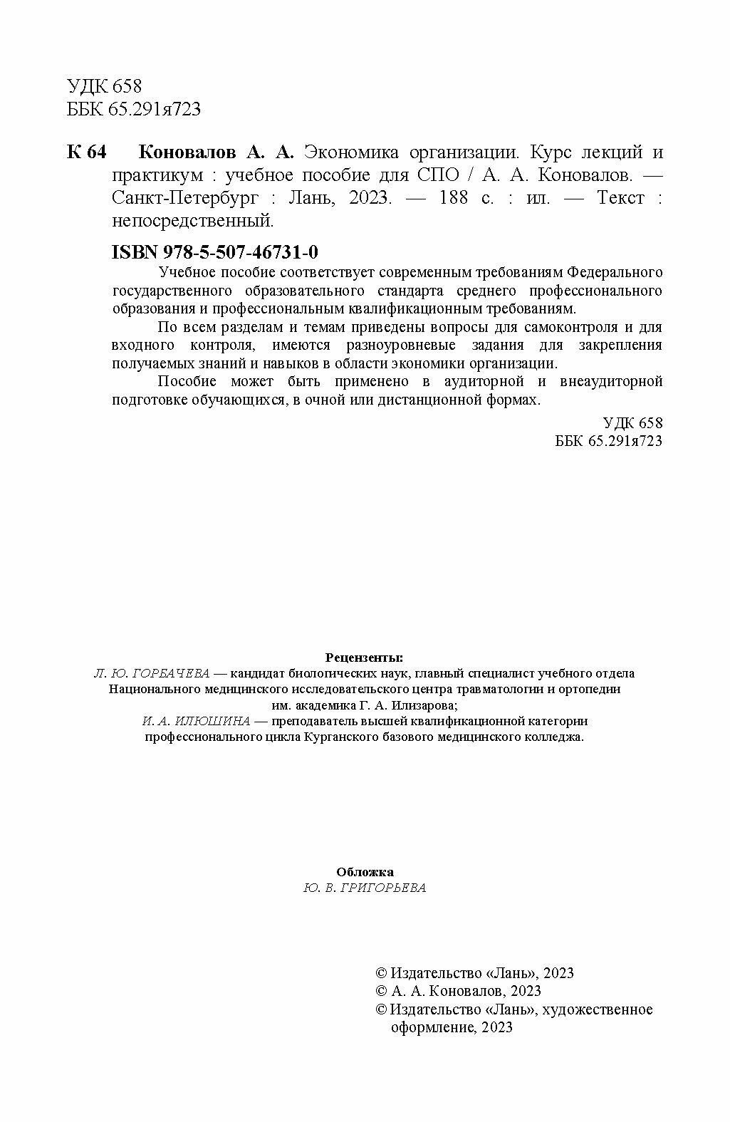 Экономика организации. Курс лекций и практикум. Учебное пособие (А. А. Коновалов); Издательство ЛАНЬ, 2025