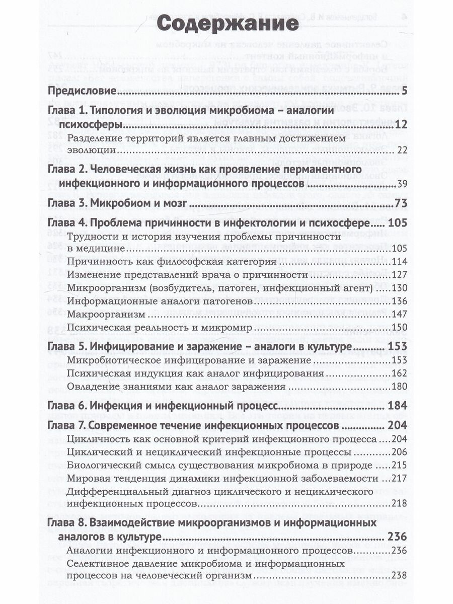 посвящена сравнительному анализу и аналогиям инфектологии, систем микробиома, семиотики культуры и психического мира. Человеческая жизнь рассматривается как проявление перманентного инфекционного и информационного процессов. Инфицирование и заражение сравнивается с психической индукцией. Описаны связи микробиома с мозгом, взаимное влияние микробиома, информационных и психических процессов. Отдельное внимание уделяется ритмике и эволюции инфекционных процессов.