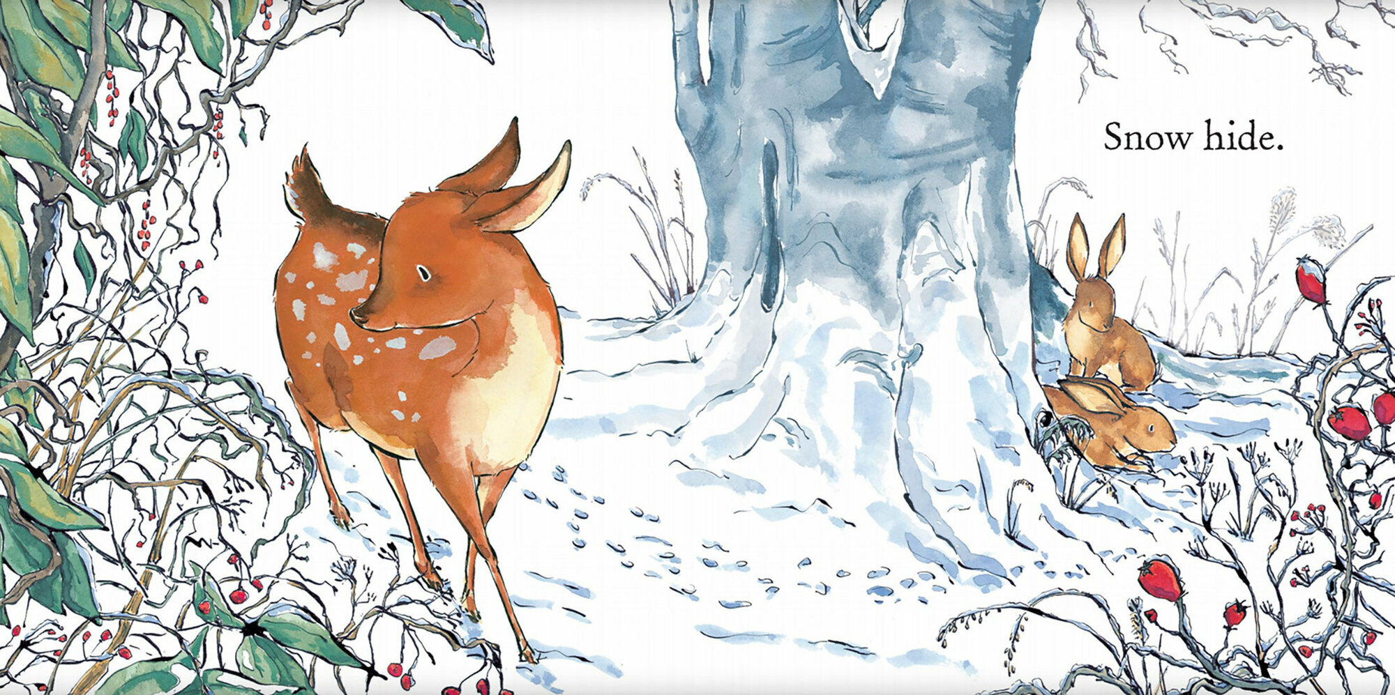 A little fawn wakes up to discover that the world outside has changed after a fall of snow. As he takes his first faltering steps into this exciting snow-white world, he finds there’s so much to explore. But then it’s time to return to the warmth of home, where his mummy and daddy are waiting for him.