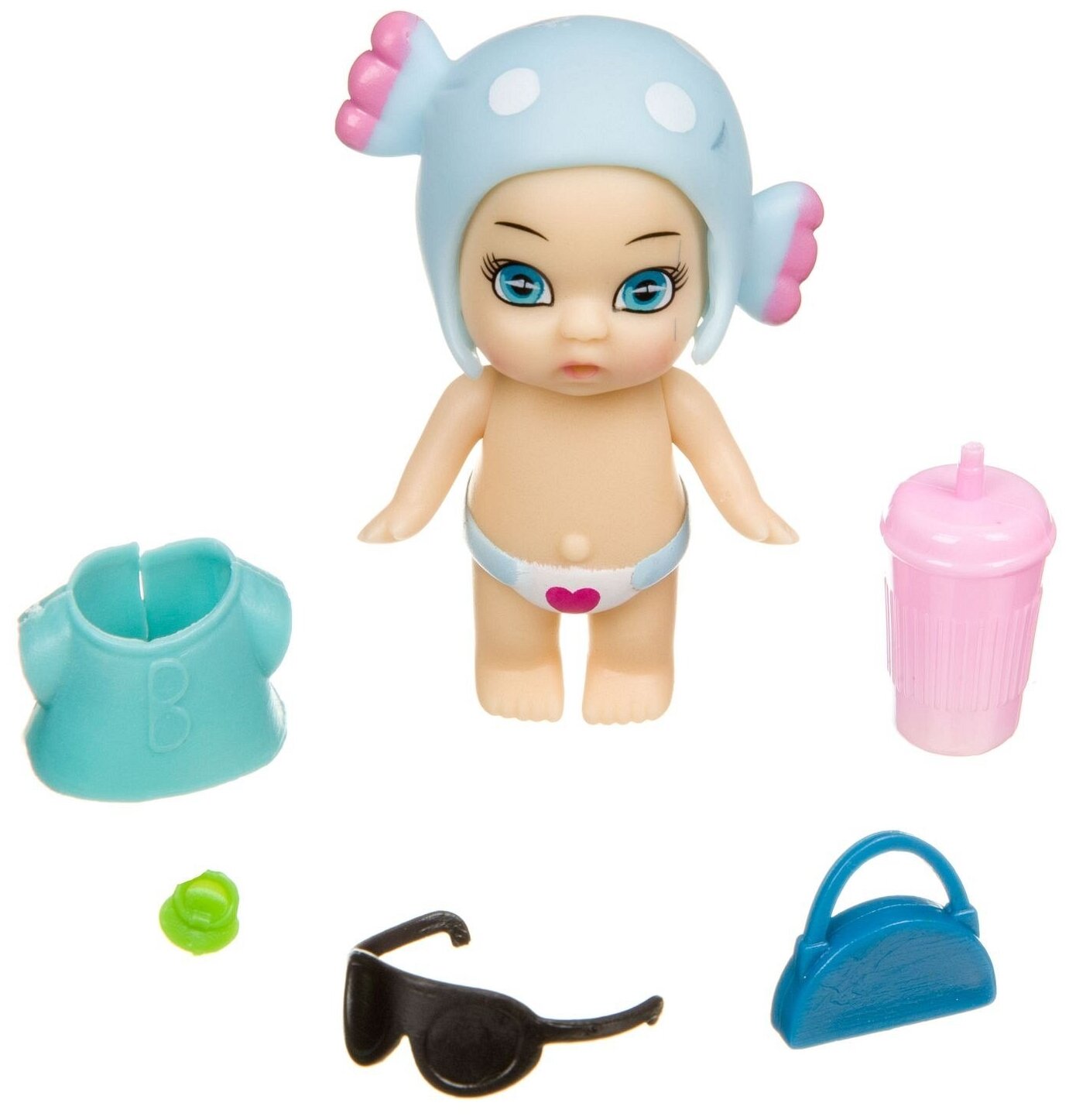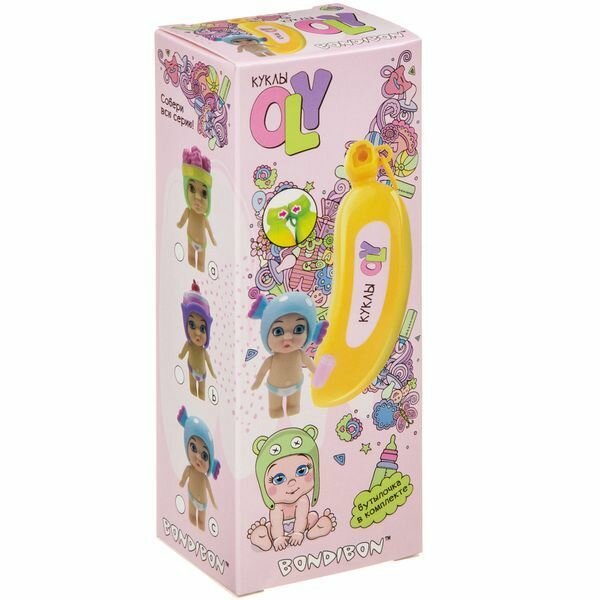 Очаровательные куколки, у каждой из которых есть свой оригинальный стиль, набор аксессуаров, а также особенные функции, наличие и разнообразие которых варьируется от одной куколки к другой. Например, одна куколка пьет, другая пьет и писает, а третья реагирует на влагу! У куколки двигаются ручки, снимается головной убор в виде вязаного животного - у каждой куколки он свой. На неё можно примерить все аксессуары из любого набора OLY. Упаковка в виде банана непременно вызовет восхищение ребенка! Он будет не только отличным местом для хранения куколки и аксессуаров, но и самостоятельной игрушкой. Каждый банан "очищается" как настоящий, а несколько бананов можно соединить между собой в целую связку. В коллекции "Кукла в банане" - 6 пупсиков в разноцветных шапочках-ушанках в виде животных и 6 пупсиков в шапочках-сладостях. Соберите всю серию кукол OLY!