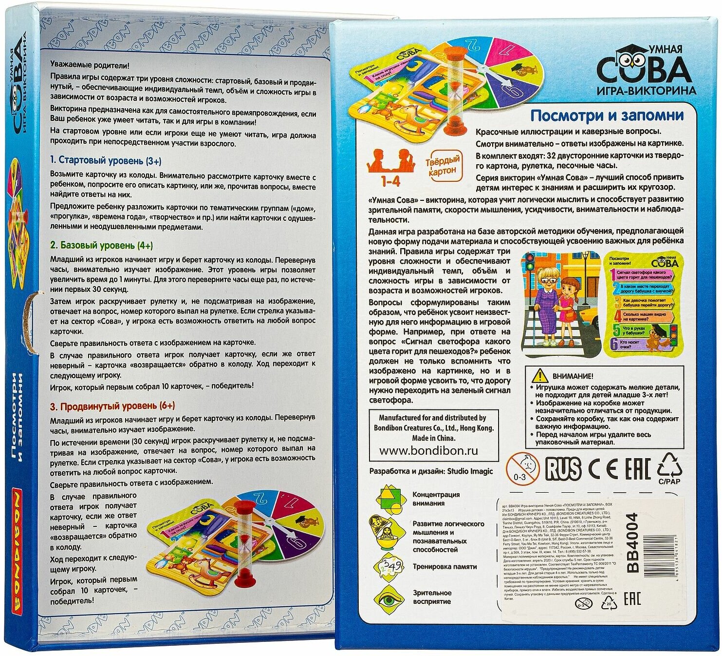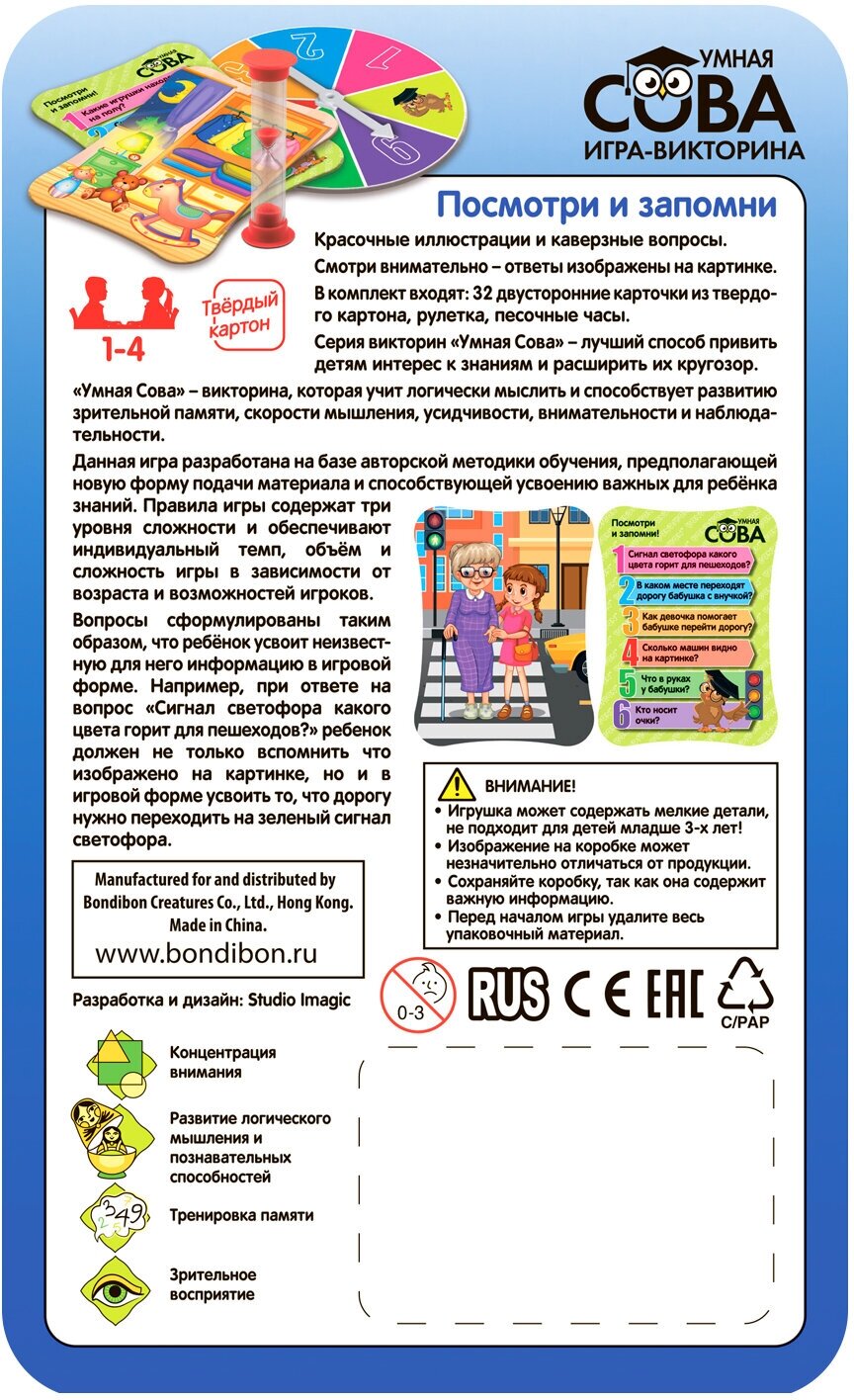 Игра-викторина Умная Сова "Посмотри и запомни" (ВВ4004) Bondibon