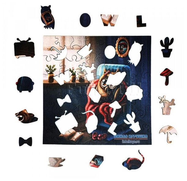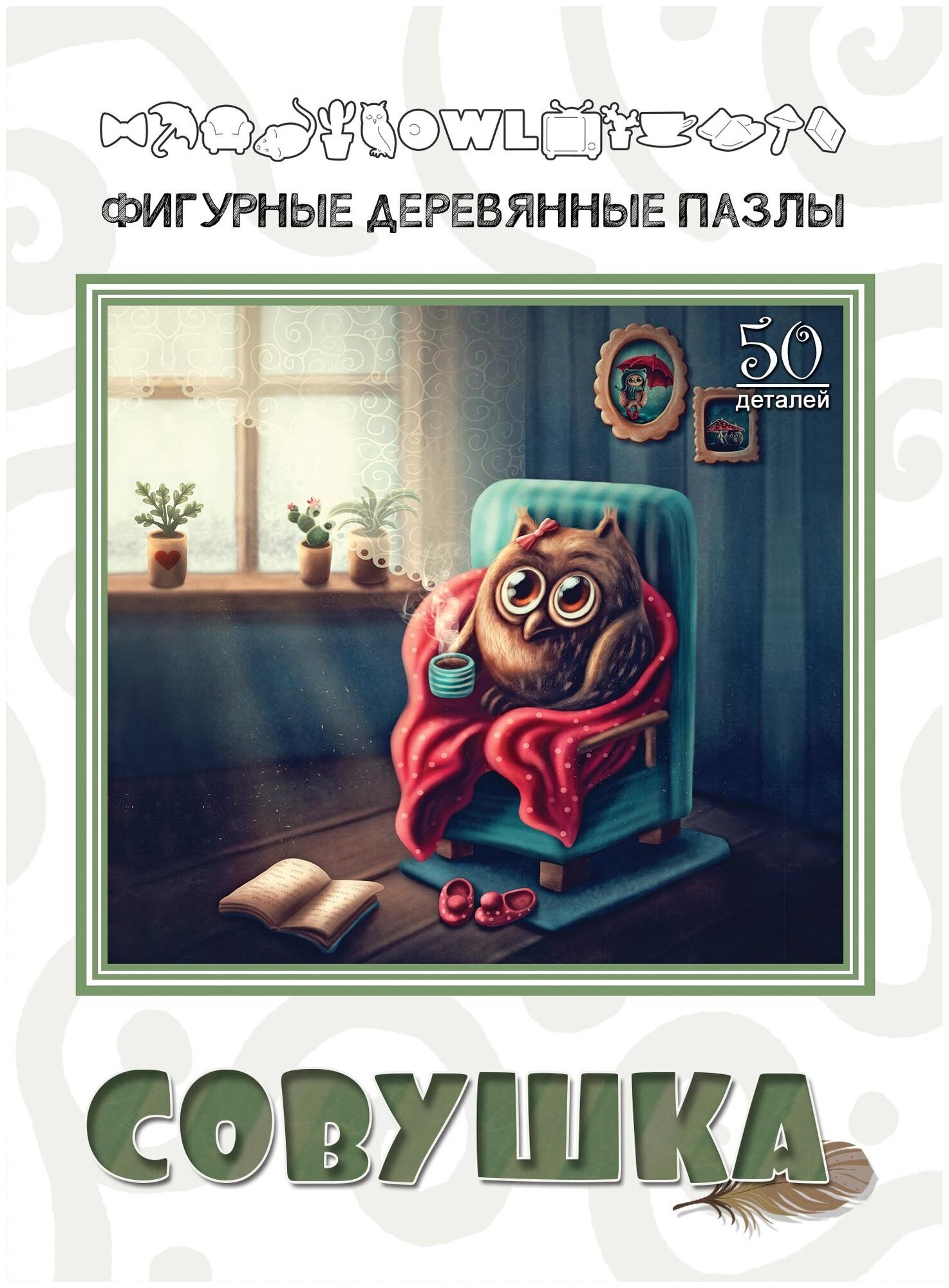 Пазл фигурный деревянный Совушка 50 деталей Нескучные игры