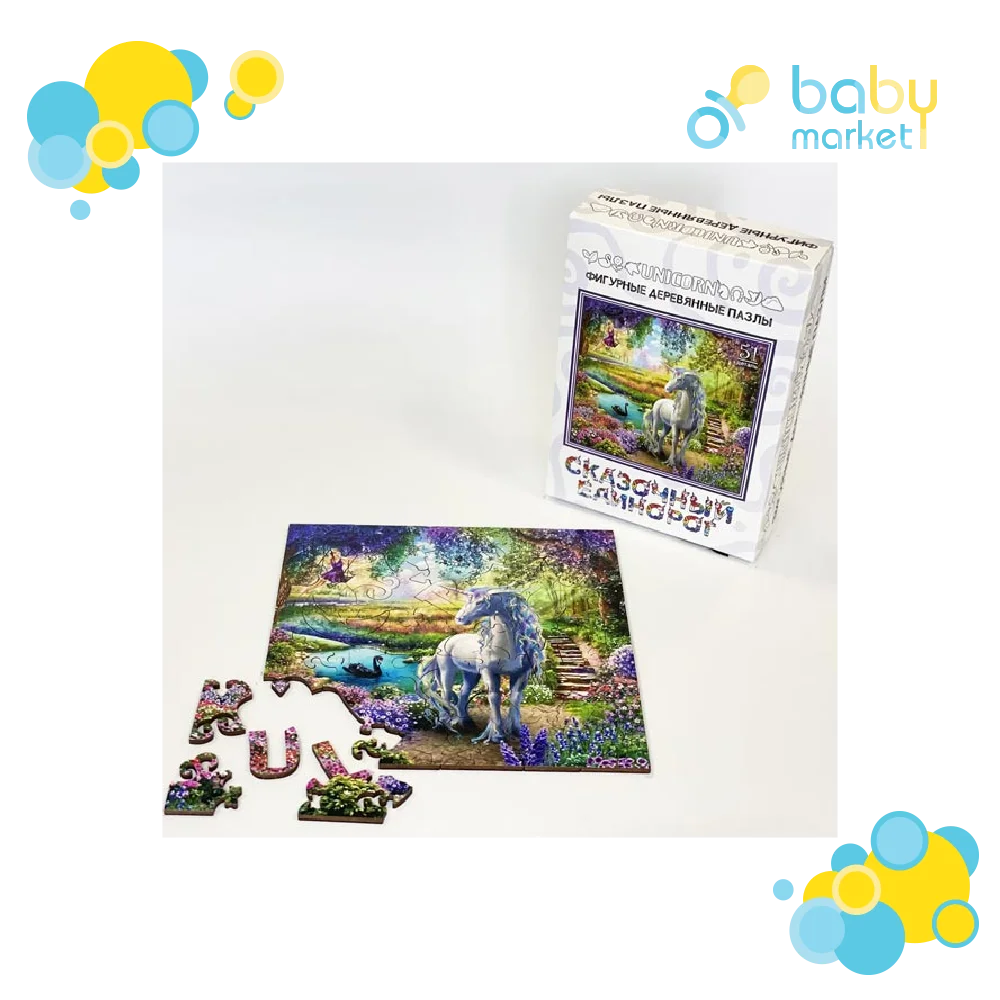 Сервис сравнения цен СкидкаГИД предлагает сравнить цены на товар «Фигурный деревянный пазл Сказочный единорог 51 деталь Нескучные игры»