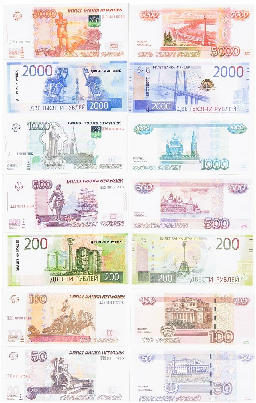 - копии банкнот (50, 100, 200, 500, 1000, 2000, 5000 руб.) - 54 шт. (11,5 х 5 см)