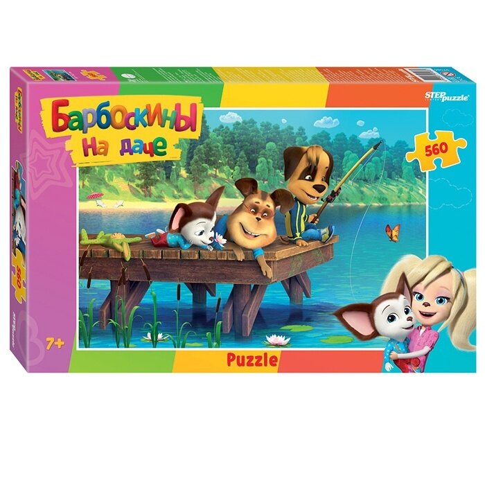 Пазл "Барбоскины" посвящен выходу в свет нового полнометражного мультфильма о приключениях пятерых щенков на даче. Здесь на картинке мы видим трёх братьев, которые отправились на рыбалку.