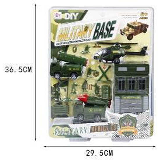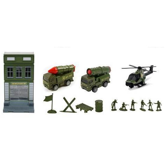 Игровой набор "Военная база" подарит мальчику возможность задействовать своё воображение и придумать множество сюжетов для интересной игры! Ребёнку будет интересно с ним играть как самостоятельно, так и в компании сверстников. Набор выполнен в традиционной зелено-камуфляжной гамме. В его составе двухэтажное здание штаба, 2 машинки и вертолет, 6 фигурок, специальные знаки и предметы.
