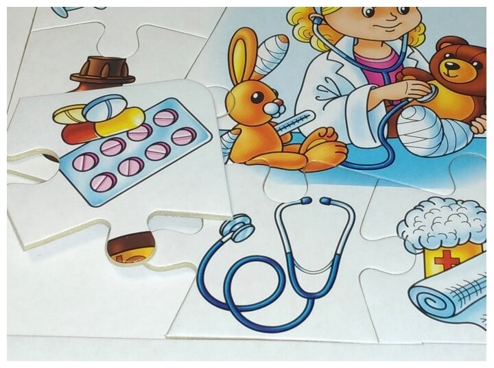 Набор "Профессии" содержит две игры в одной - лото и пазл. Игра способствует развитию внимания, логического и ассоциативного мышления, зрительной памяти и мелкой моторики рук ребёнка, а также знакомит детей с объектами окружающего мира, расширяет кругозор. Её главной особенностью являются крупные, лёгкие, приятные на ощупь фишки из вспененного полиуретана, которые сразу заинтересуют маленьких игроков. Они безопасны, практичны и содержат красочные иллюстрации, способствующие эмоциональному развитию ребёнка.