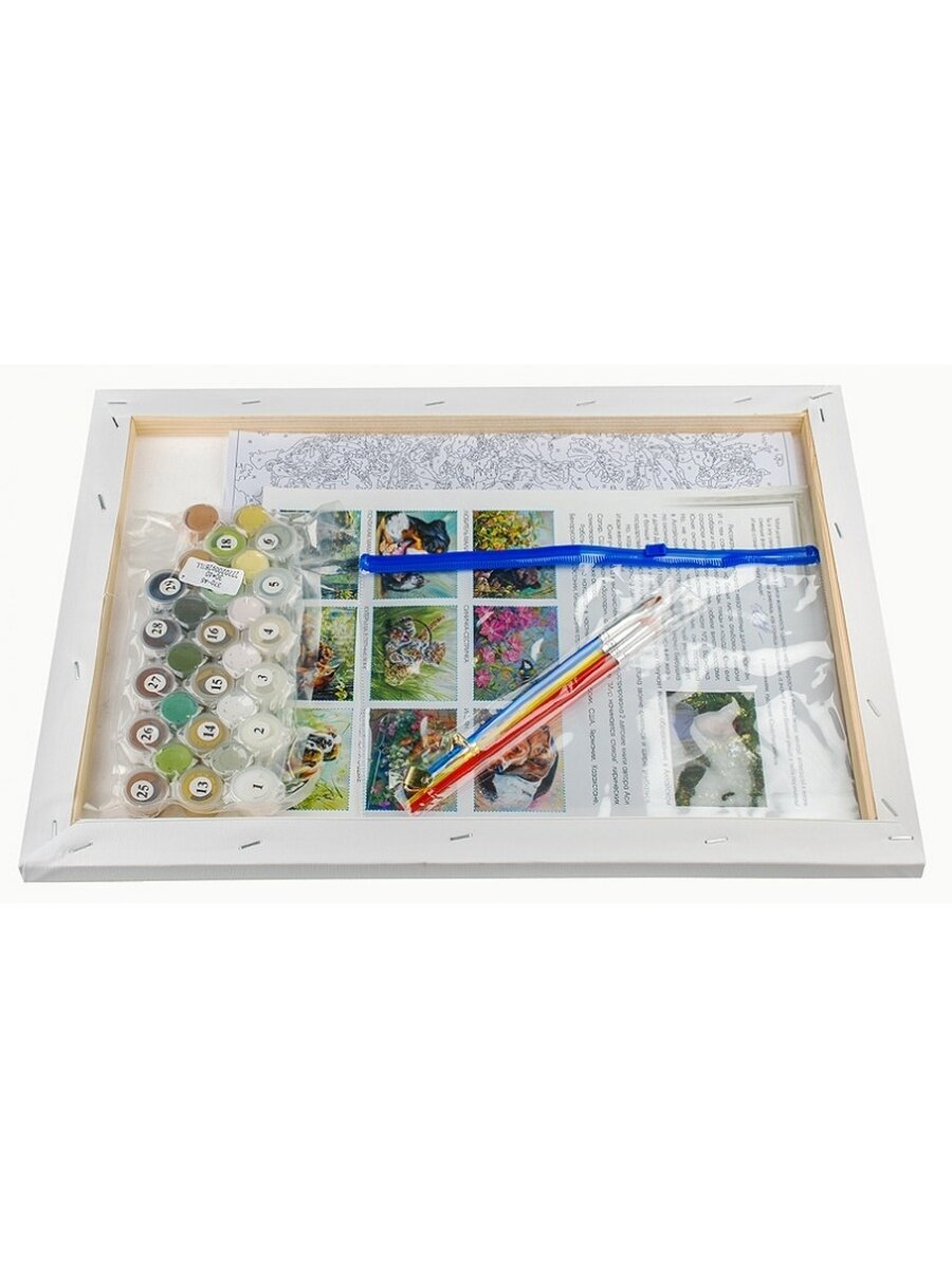Для создания авторского сюжета на холсте с пронумерованной схемой используются акриловые краски на водной основе и кисточки разных размеров. Несомненное преимущество акрила - привлекательность цветов, стойкость и аккуратное нанесение на гладкую поверхность материала. Прочувствуйте то, как каждый мазок кисти выстраивает новые детали и соединяет их в одну общую композицию.