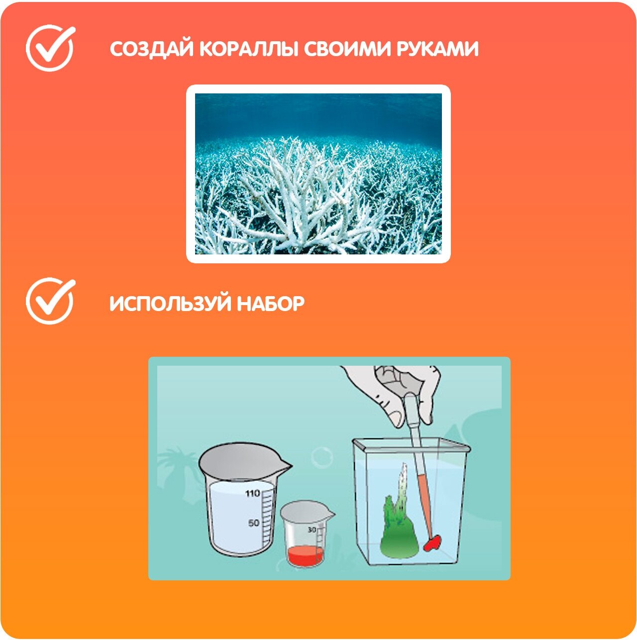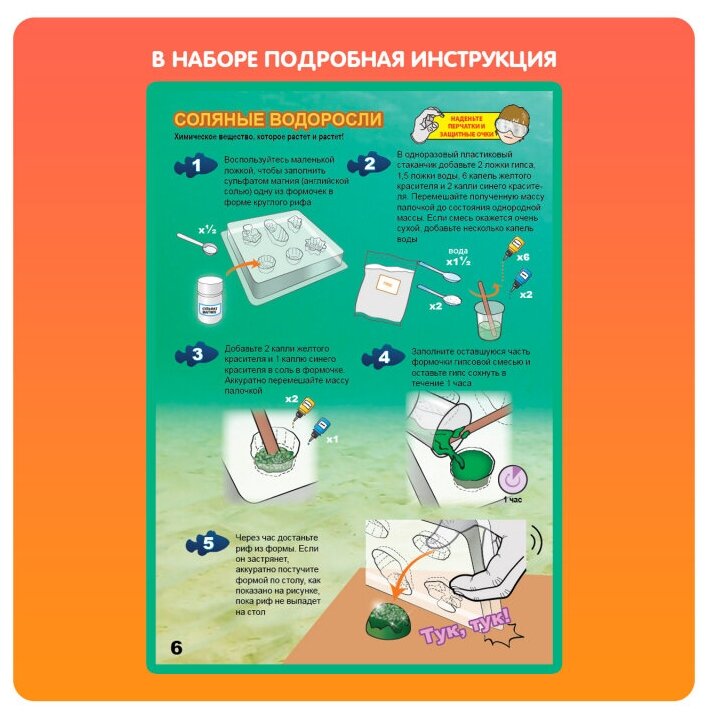 Создай подводный химический сад, в котором будут обитать: соляные водоросли, быстрорастущие кораллы и коралловые рифы. Узнай много нового о химических реакциях, гравитации и плотности.