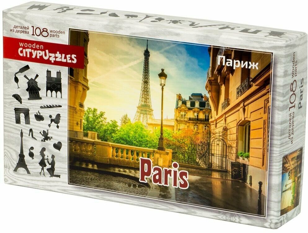 Фигурный деревянный пазл Париж 108 элементов Нескучные игры