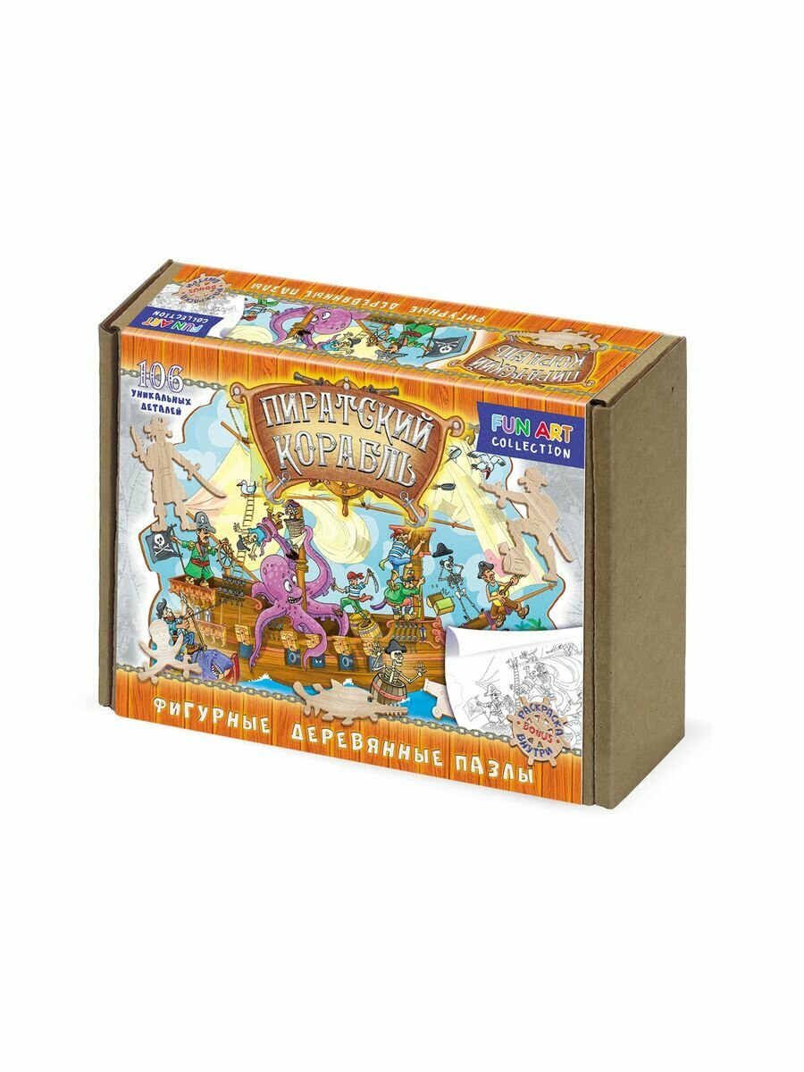Фигурный деревянный пазл Пиратский корабль 106 деталей Нескучные игры