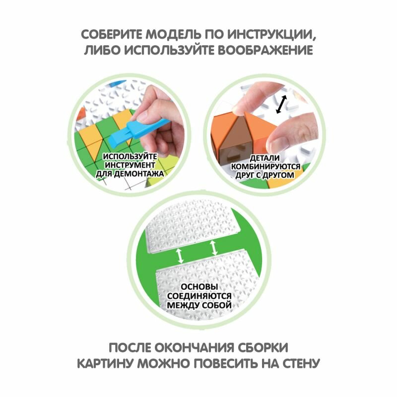 Соберите понравившуюся вам модель по инструкции либо используйте ваше воображение. После окончания сборки можете прикрепить к основе крючок и повесить на стену. Если вы хотите разобрать картинку, используйте палочку для более легкого отсоединения деталей от основы.