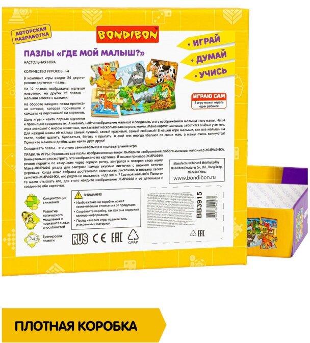 На сегодняшний день товар «Пазлы "Где мой малыш?". Настольная игра (ВВ3915) Bondibon» можно купить с кешбеком в 1 магазине: Яндекс.Маркет