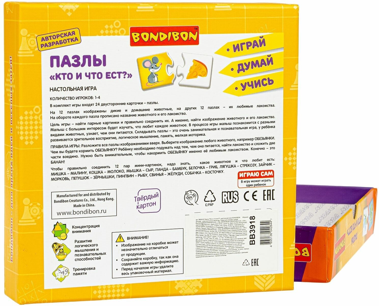 Пазлы "Кто и что ест?". Настольная игра (ВВ3918) Bondibon