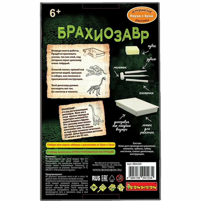 На сегодняшний день товар «Набор "Исторические раскопки. Брахиозавр" (светящийся в темноте) (ВВ4209) Bondibon» можно купить с кешбеком в 1 магазине: Яндекс.Маркет